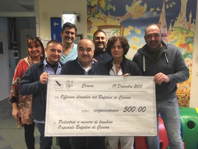 Nuova donazione a favore del progetto ‘Pediatria a Misura di Bambino’. Questa volta il sostegno arriva da un gruppo di dipendenti dell’ospedale Bufalini di Cesena, in particolare dai colleghi delle officine di manutenzione e dell’ufficio tecnico, che il 19 dicembre scorso hanno organizzato una serata benefica allo scopo di raccogliere fondi da devolvere al progetto dell’Ausl a favore dei piccoli pazienti ricoverati in ospedale.