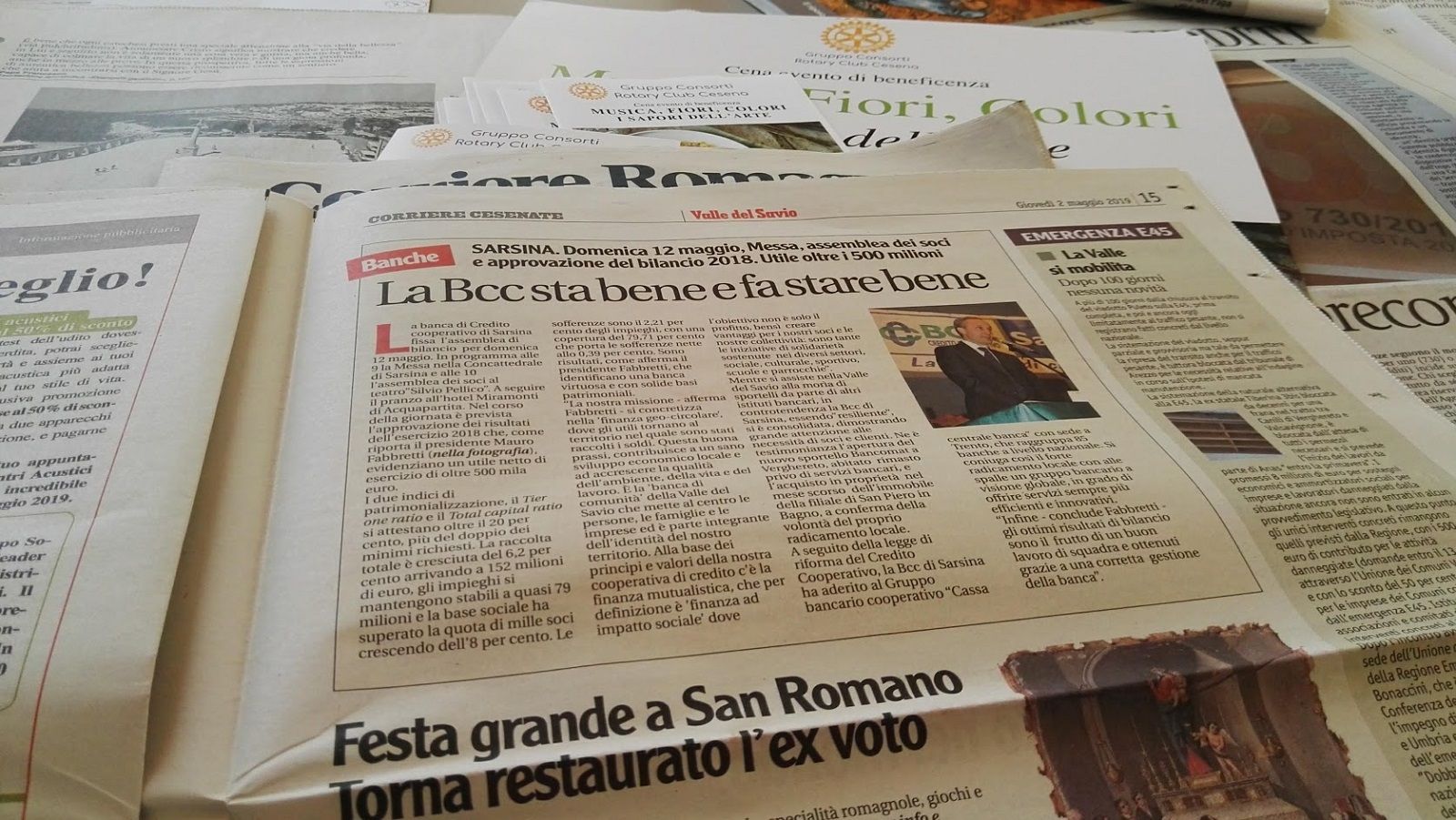 Sulla versione cartacea (pagina 15) a colloquio anche con il presidente della Bcc di Sarsina, Mauro Fabbretti, in vista dell’assemblea per l’approvazione del bilancio (utile oltre i 500 mila euro) che si terrà domenica 12 maggio.