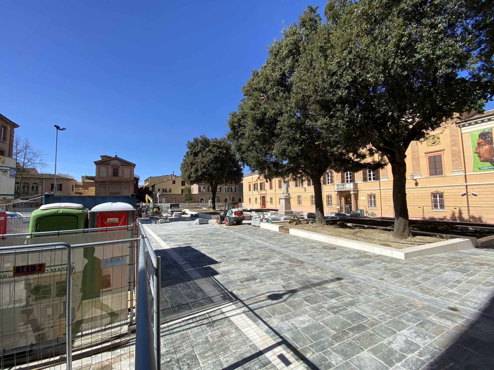 Situate tra la Biblioteca Malatestiana e il palazzo del Ridotto, le tre piazze saranno il principale ingresso dell’istituzione libraria cesenate a cui sarà possibile accedervi tramite i tre portoni che si aprono sulla facciata principale dell’edificio. Dai prossimi giorni l’avanzamento del cantiere, e delle opere di pavimentazione, consentiranno alle ditte lavoratrici di liberare piazza Almerici dall’area di parcheggio, temporaneamente istituita per fornire un’alternativa ai residenti di palazzo Almerici che, in questo modo, torneranno a utilizzare le proprie autorimesse transitando dalla piazza a vicolo Masini.