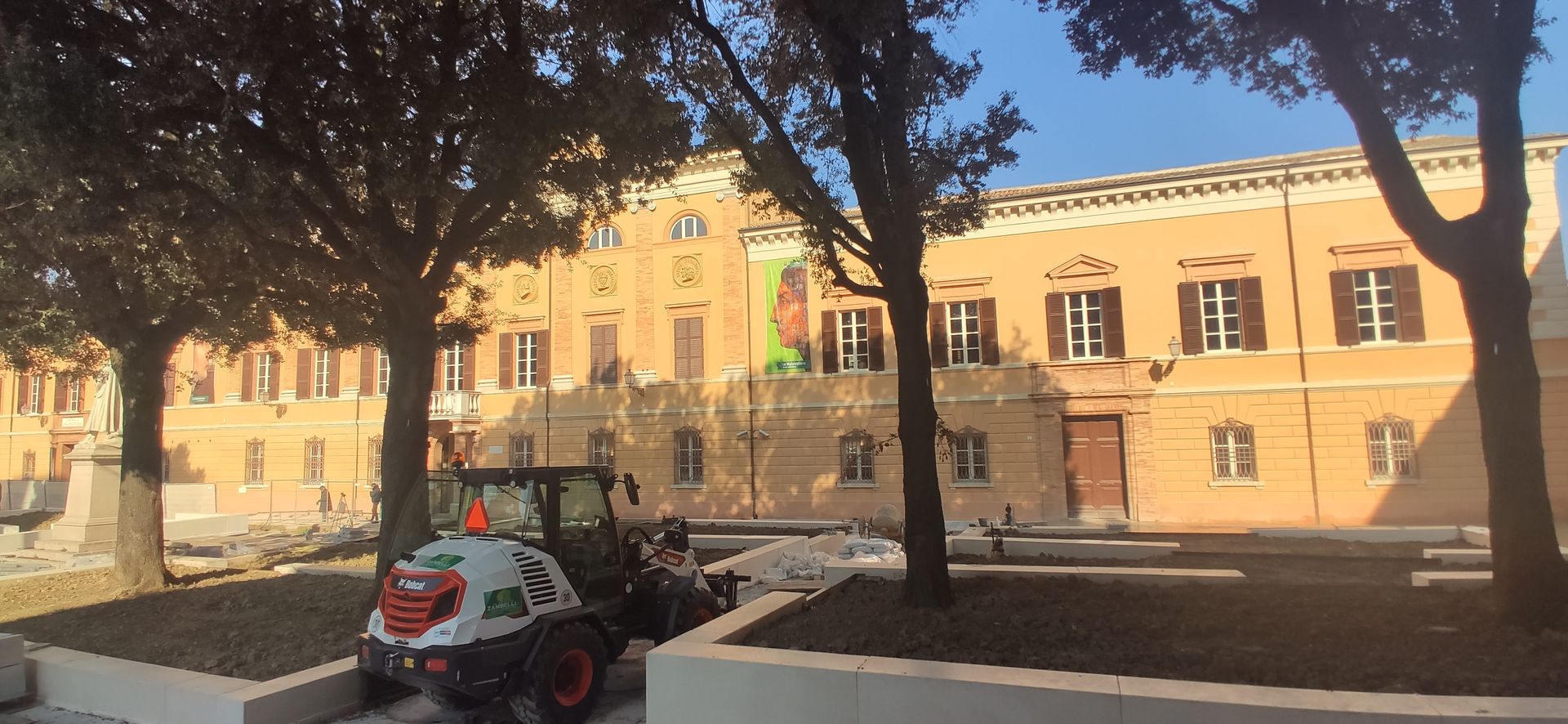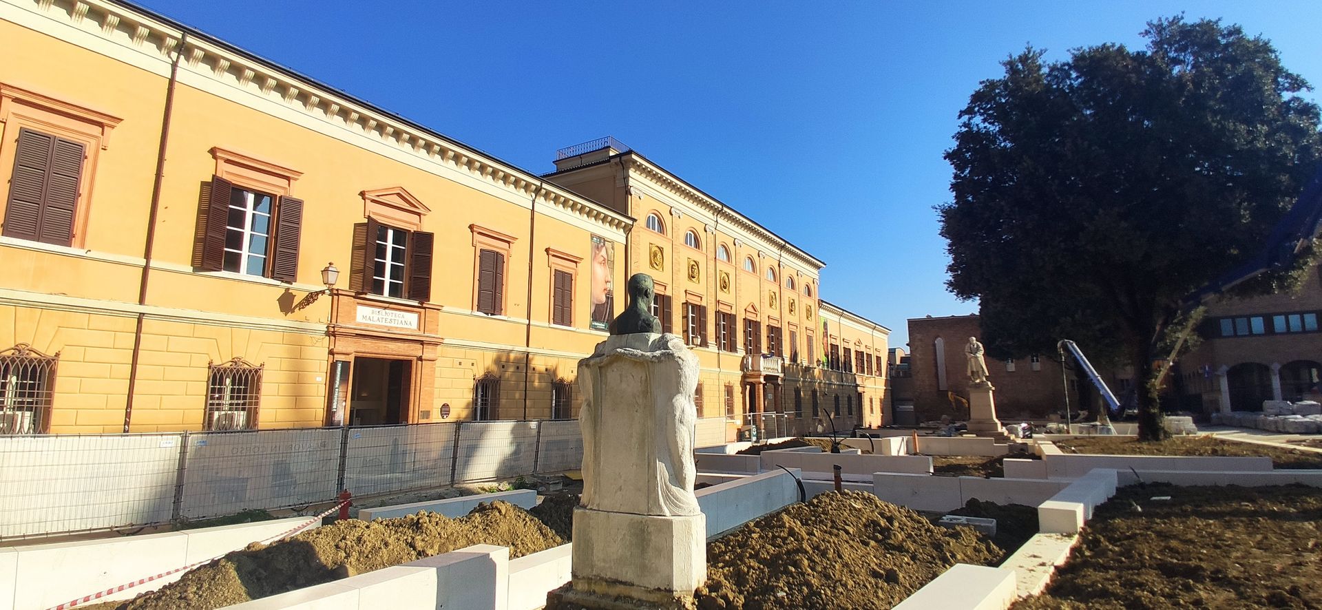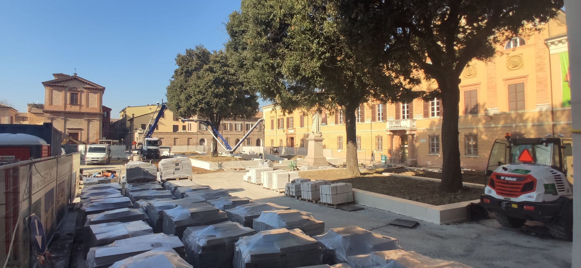 Il nuovo accesso alla Biblioteca Malatestiana prende forma. Dopo il completamento dell’intervento in piazza Almerici, pienamente fruibile, avanzano con ritmi celeri i lavori nel cantiere denominato delle “Tre piazze”, in pieno centro storico a Cesena.