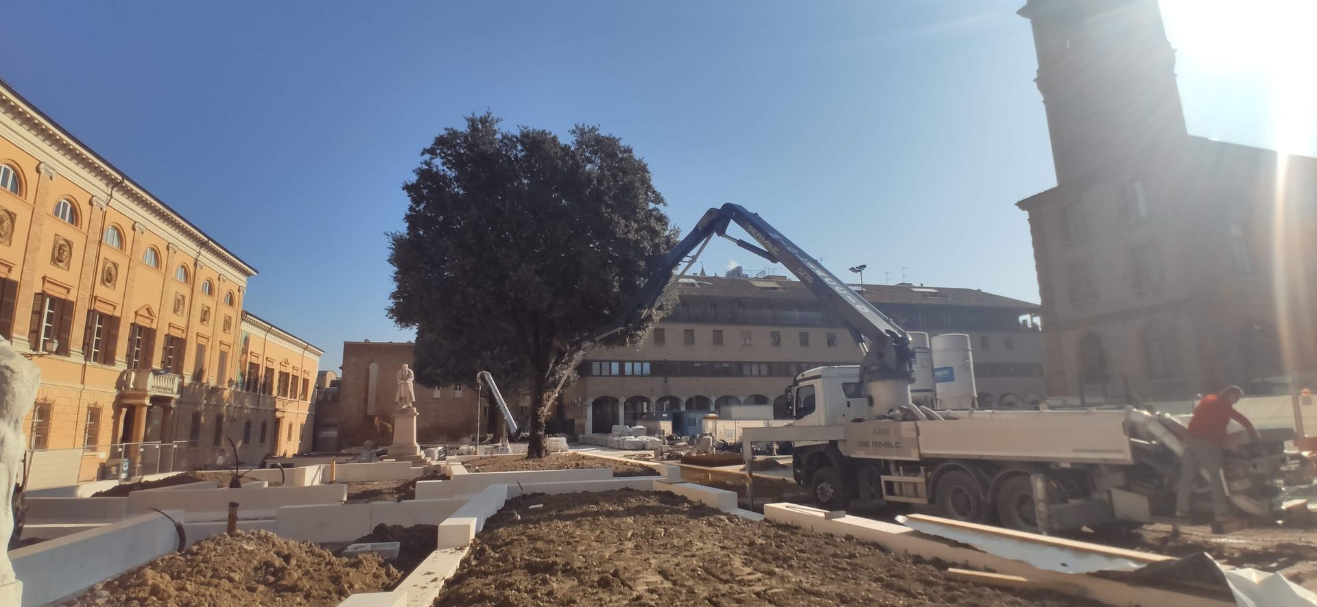 Piazza Bufalini, iniziata la posa della pavimentazione