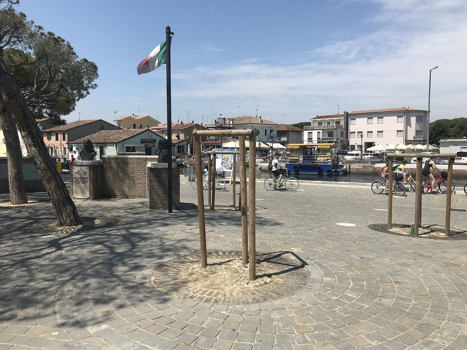 Da qualche giorno, piazza Ciceruacchio a Cesenatico è priva dei suoi nuovi pini.