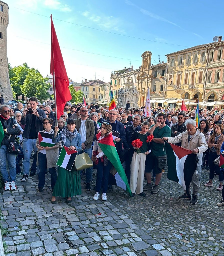 Manifestazione oggi pomeriggio in piazza del Popolo, a Cesena, “contro il genocidio in corso a Gaza” e in segno di solidarietà al popolo palestinese.