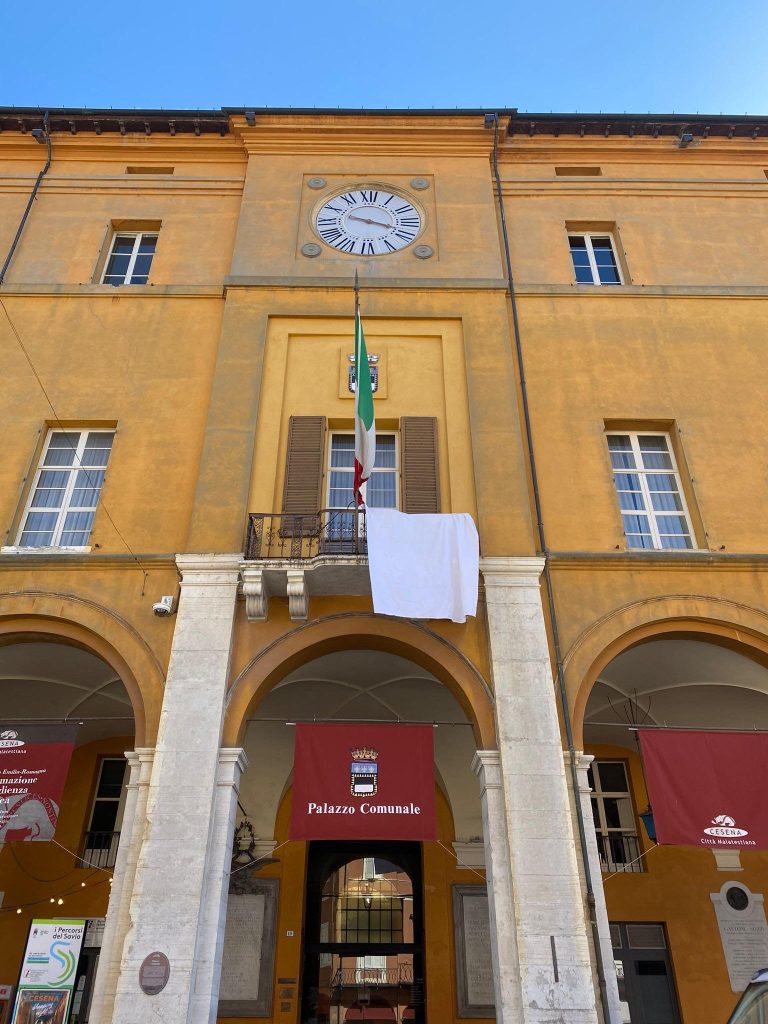 La frase “Cessate il fuoco in Palestina”, ricorda in una nota l’assessora cesenate con delega alla Pace Giorgia Macrelli, “campeggia da mesi sulla facciata di palazzo Albornoz, sede del Comune. Un comune da sempre luogo di accoglienza e costruzione di pace quotidiana. Un comune che ha istituito il premio “Città per la pace”, assegnato quest’anno a Youth of Sumud, gruppo che pratica la resistenza non violenta in risposta all’occupazione illegale dei coloni in Cisgiordania”. Per Macrelli “oggi, sulla facciata del palazzo comunale, esponiamo un lenzuolo bianco perché non possiamo permettere che il genocidio in atto passi inosservato, lasciato alle cronache distorte della stampa e in mano un governo che ancora una volta in Europa vota contro la richiesta di rivedere gli accordi tra Ue e Israele. Le città e la popolazione tutta devono rompere il silenzio: c’è un popolo lasciato alla fame, senza cure mediche né aiuti umanitari e c’è una città, Cesena, che non si volta dall’altra parte e non cede all’indifferenza”.