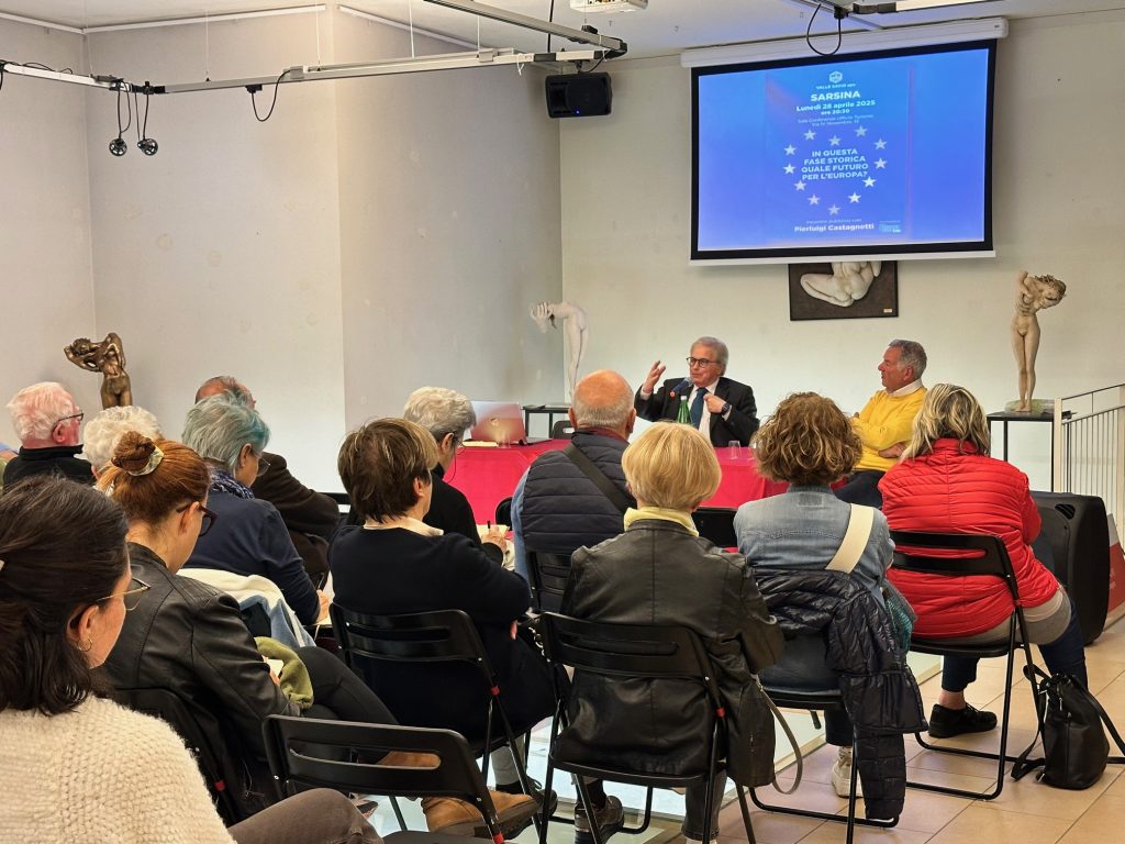 È quanto emerso lunedì sera 28 aprile a Sarsina in un incontro organizzato dalle Acli Valle Savio (il primo dopo la costituzione del sodalizio) con la partecipazione di Pierluigi Castagnetti, politico ora in pensione ed ex parlamentare europeo dal 1994 al 1999. Un incontro che si inserisce nelle celebrazioni del 9 maggio, festa dell’Europa, a 75 anni dalla dichiarazione dell’allora ministro degli esteri francese Schuman, in un momento storico in cui la “casa comune” è stata ancora una volta messa in discussione, e in cui le mosse scomposte alla Trump ci interrogano sul rilancio di un modello che va protetto con orgoglio. E si inserisce naturalmente nel solco della grande tradizione europea sarsinate con l’avvio, nel 1956, dei gemellaggi e col sindaco Lorenzo Cappelli che ne sposò in pieno la causa.