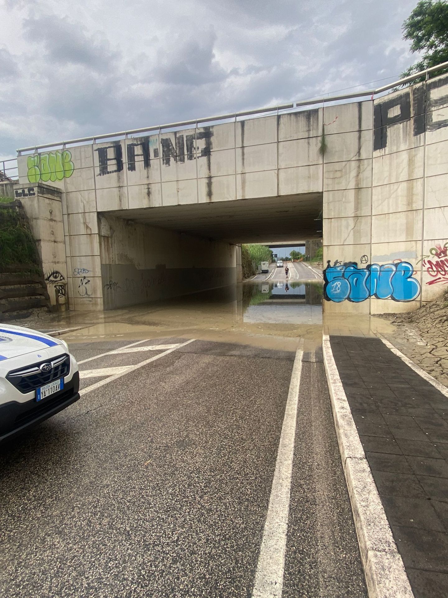 Pioggia battente, sottopasso allagato e chiuso al traffico