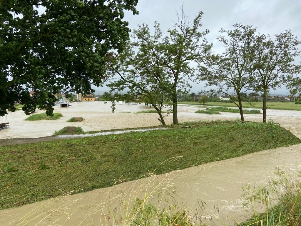 Il Pisciatello ha rotto gli argini a Calisese. La foto sopra è del parroco don Stefano Pasolini. Nel video sotto, il momento in cui il fiume ha rotto gli argini in zona Case Francesconi, a Montiano.