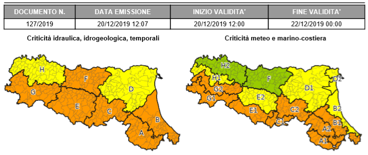 Il servizio di Protezione civile dell’Emilia-Romagna conferma, per la giornata di oggi, venerdì 20 dicembre, lo scenario previsto con l’allerta meteo emessa ieri, giovedì 19 dicembre.