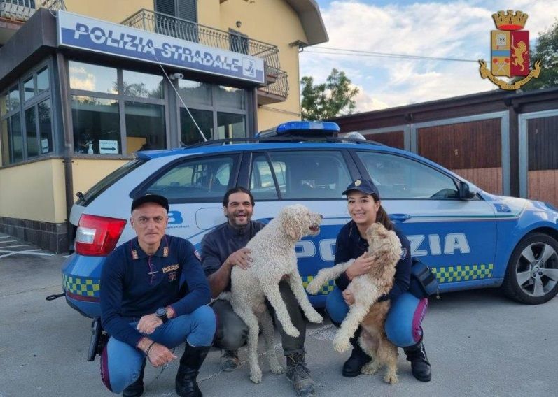 Cece e Raffi, due cani di razza lagotto romagnolo di 9 e 6 anni, sono stati salvati dalla Polizia di Stato di Forlì e riconsegnati al loro padrone. È accaduto ieri pomeriggio sulla strada statale 3 bis Tiberina – E45, quando una pattuglia della Sottosezione di Bagno di Romagna, all’altezza di Mercato Saraceno, ha notato un furgone fermo a margine della strada.