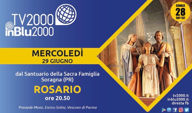 ‘Prega con noi’, Tv2000 e InBlu2000 invitano i fedeli, le famiglie e le comunità religiose a ritrovarsi, mercoledì 29 giugno alle 20.50, per recitare insieme il Rosario trasmesso su Tv2000 (canale 28 e 157 Sky), InBlu2000, e su Facebook.