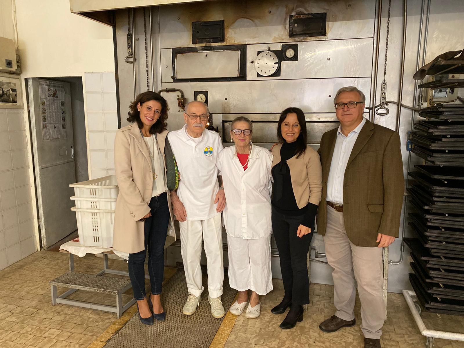 I coniugi Pasolini sono affiancati dal figlio Nicola, in veste di collaboratore, che nacque l’anno in cui aprì il forno. “Lo rilevai dal 1° gennaio 1970 e l’ho tuttora in affitto d’azienda – racconta Carlo Pasolini – dal vecchio forno Comini che aveva aperto nello stesso luogo nel 1938, dopo aver fatto tanta gavetta, fin da quando avevo 15 anni. Provai anche a lavorare come manovale, ma scelsi il forno perché si faceva meno fatica, pur lavorando di notte. Poi mi innamorai del mestiere e Paola mi è sempre stata al fianco. Io impasto e sforno, lei vende, abbiamo adattato il tempo della famiglia a quel del forno al lavoro e viceversa”. “La mia più grande soddisfazione? – prosegue Pasolini -: l’apprezzamento dei clienti. Ho anche un vanto: aver inventato la treccia di ciabatta, croccante pane comune privo di grassi, il primo che finisce, il nostro marchio di fabbrica. Nel corso del tempo il consumo di pane è diminuito, per i mutati stili alimentari, abbiamo eliminato i dipendenti, ma resistiamo a lavoriamo ancora 500 quintali di farina all’anno. Ho 77 anni e sento un po’ il peso del lavoro, ma continuo ad alzarmi ogni giorno all’una di notte per fare il pane”. “I clienti sono la mia seconda famiglia – aggiunge la consorte -: un altro prodotto che incontra molto il loro gusto sono i ‘biscotti della Paola’, che portano il mio nome, ma anche quelli li fa Carlo: io lo bado”, scherza la affabile consorte del titolare. “La consegna della targa per i 50 anni di attività non è stata una cerimonia – rimarcano la presidente Confartigianato Pedduzza – ma un incontro edificante, piacevolissimo e anche commovente, per certi versi, come quando Carlo e Paolo ci hanno mostrato il vecchio forno che ancora oggi utilizzano: una lezione sul campo, la loro,su quello che è l’amore per il lavoro ben fatto a beneficio delle persone. Abbiamo toccato con mano il valore artigiano, assaggiandolo anche nelle sue prelibatezze. Bisognerebbe portare qui le scolaresche”. “Sono attività come queste – ha detto il sindaco Bisacchi – che rendono più servita, coesa e vivibile la città. Dobbiamo salvaguardarle e preservarle con massima cura, sono una risorsa insostituibile”.