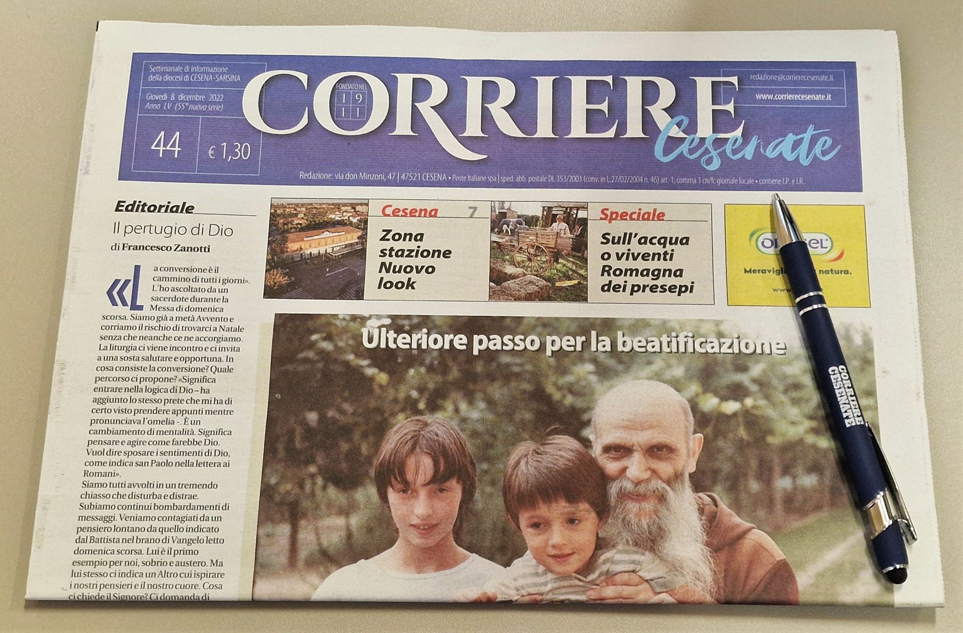 È in edicola e nelle case degli abbonati, con data 8 dicembre, il numero 44 dell’edizione cartacea del Corriere Cesenate. In prima pagina l’ulteriore passo verso la beatificazione di padre Guglielmo Gattiani.