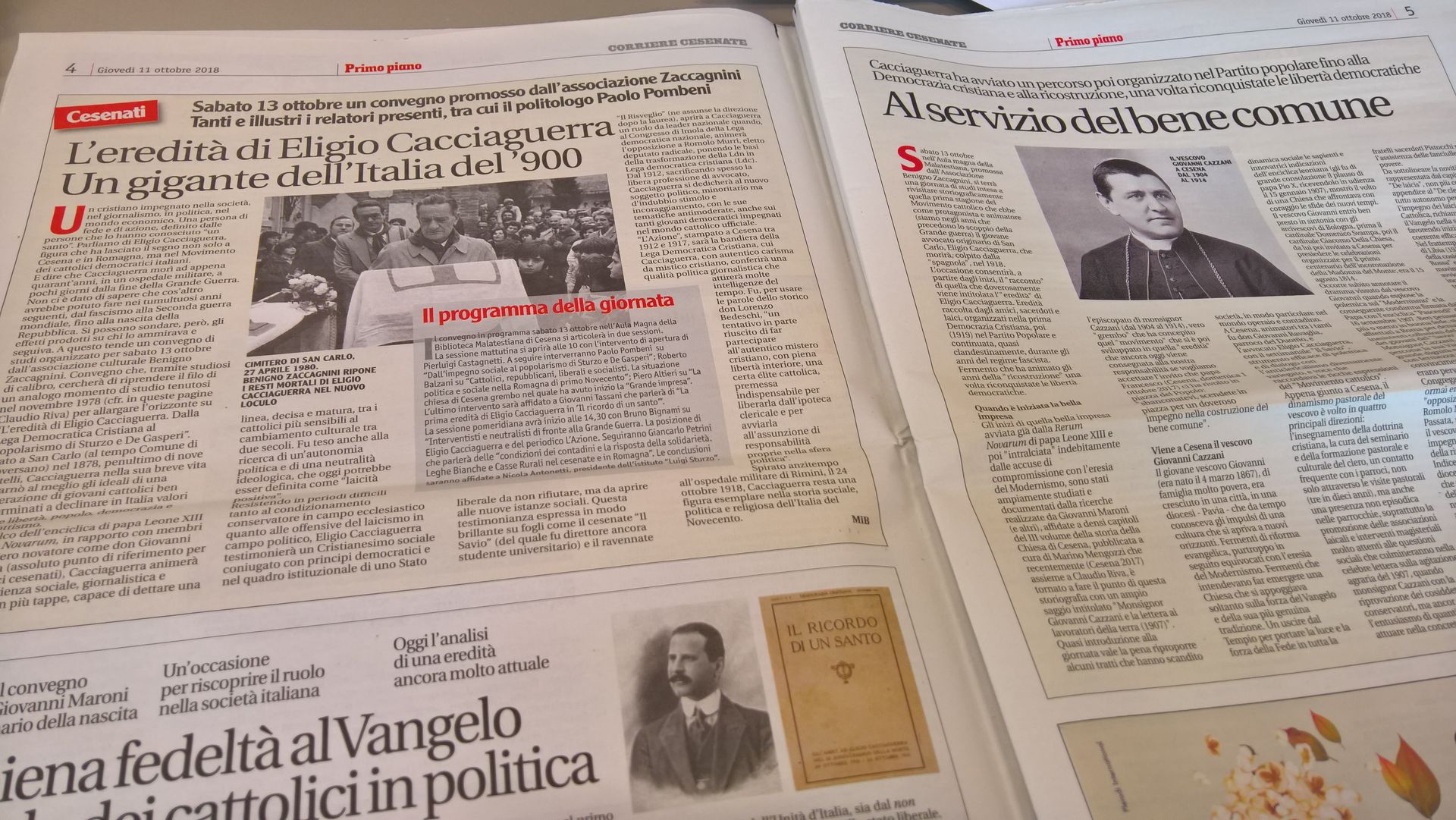 Le pagine del Corriere Cesenate di questa settimana profumano di santità: sono state avviate le pre-indagini di beatificazione per don Giancarlo Bertozzi e la coppia di coniugi cesenati Bruna e Consilio Pistocchi, mentre altre due pagine sono dedicate a Eligio Cacciaguerra “un santo” di inizio ‘900. Il settimanale è in edicola e nelle case degli abbonati da oggi.