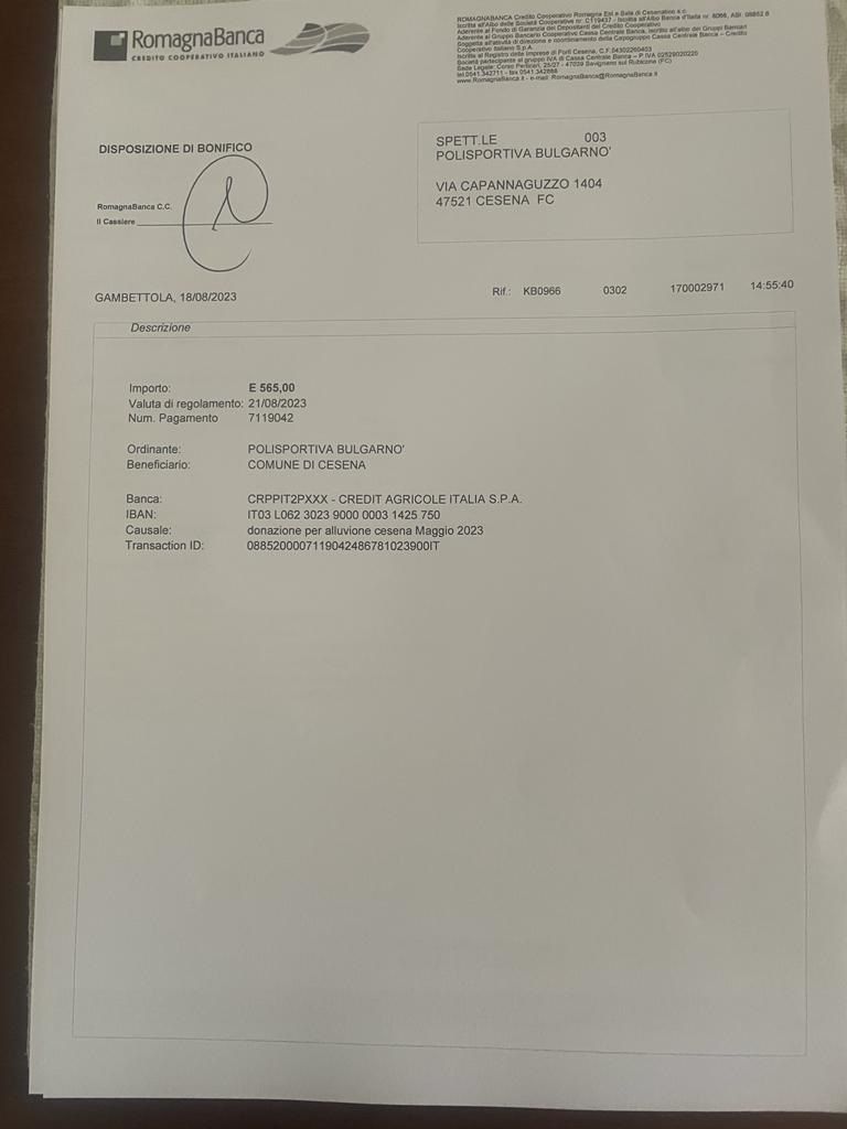 Successo anche per la serata di giovedì 17 agosto, promossa dalla locale Polisportiva. Piadina per tutti a cinque euro e incasso da 565 euro già versato (vedi la foto qui sotto) devoluto al Comune di Cesena per sostenere le famiglie alluvionate del 16 maggio.