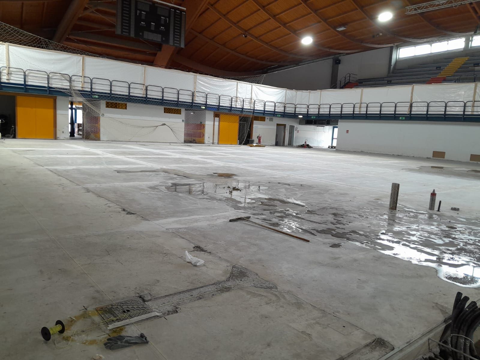 Le consistenti precipitazioni piovose hanno infatti causato ingenti danni al parquet, ad uso gioco basket, calcio a 5 e altri sport, alla sottostruttura portante in legno, alle pavimentazioni perimetrali al campo da gioco e agli spazi tecnici e di servizio.