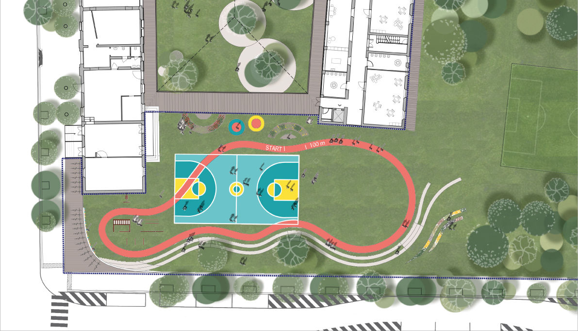 • Un campo da gioco esterno che possa consentire di fare attività sportiva all’aperto in maniera organizzata e sicura;