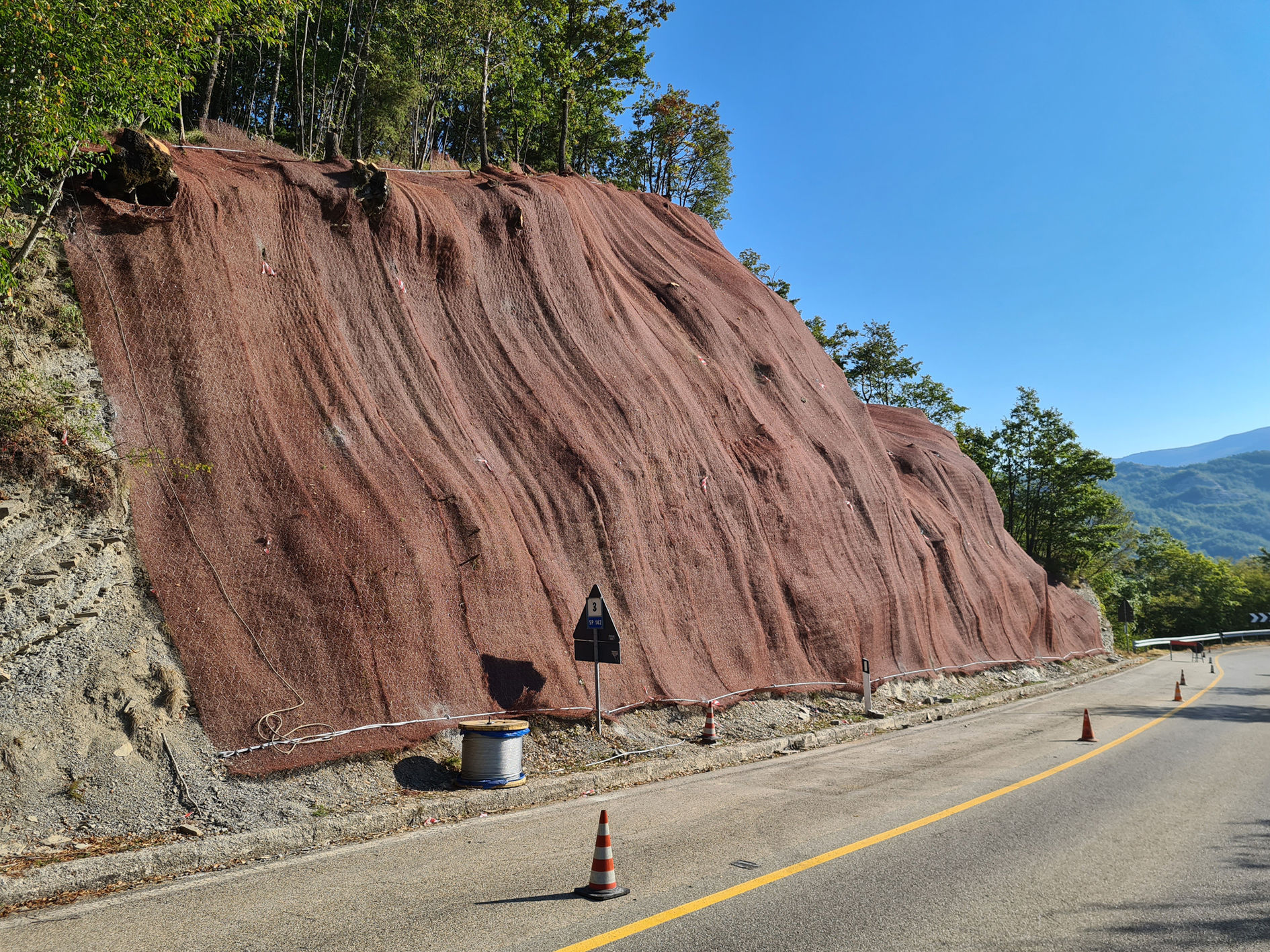 Si tratta di n’opera rilevante e di grande importanza, che ha riguardato tutte le pareti esposte della strada dei Mandrioli, caratterizzata da estese pareti rocciose, che ne rappresentano un sito geologico di livello europeo, ma che ne determinano un problema di manutenzione e sicurezza.
