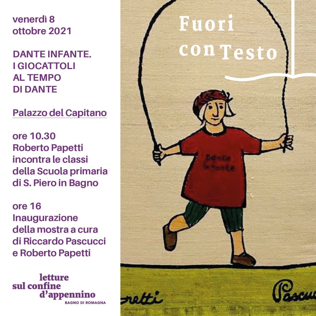 Si comincerà venerdì 8 ottobre, alle 10.30 (Palazzo del Capitano), con l’incontro di introduzione alla mostra “Dante infante. I giocattoli al tempo di Dante, curata da Roberto Papetti (esperto di giocattoli antichi e moderni) e la Stamperia romagnola Pascucci, alla quale parteciperanno le classi della scuola primaria di San Piero in Bagno. L’inaugurazione al pubblico della mostra avverrà alle 16.