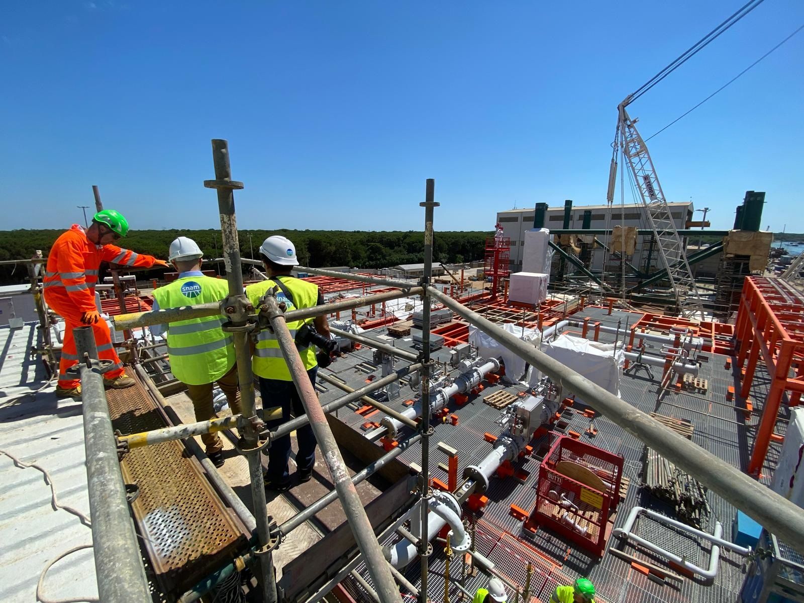Primi scorci sul cantiere del rigassificatore a largo di Punta Marina. Questa mattina, Snam ha presentato alla stampa lo stato di avanzamento delle opere a terra, con un sopralluogo al cantiere di Rosetti Marino che sta realizzando la piattaforma da posizionare a fianco del cosiddetto “ragno” (riutilizzato in toto come ausilio alla struttura nuova) che accoglierà la Fsru Singapore (“unità di rigassificazione galleggiante”).