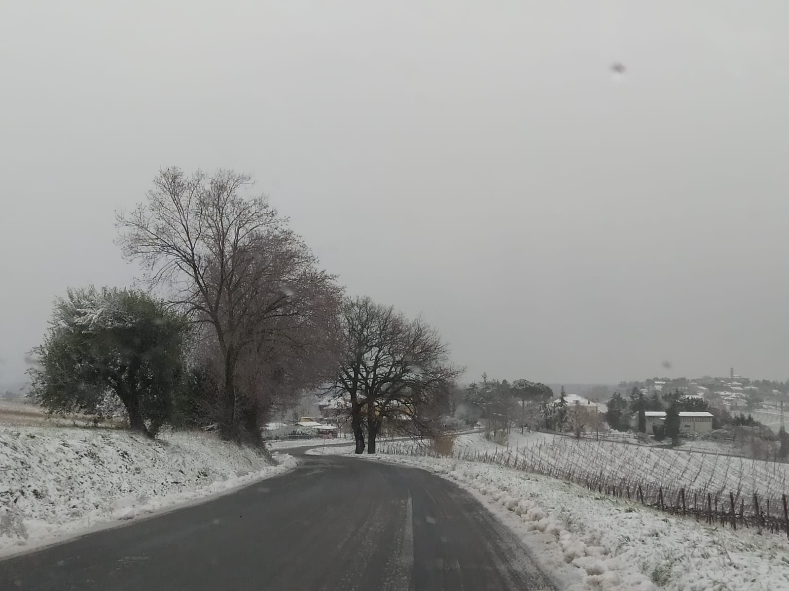 In alta collina, Comuni quali Borghi, Roncofreddo e Sogliano si sono visti costretti a chiudere le scuole. A Longiano (foto in alto) si sono accumulati alcuni centimetri di neve e in strada sono scesi i mezzi spazzaneve.
