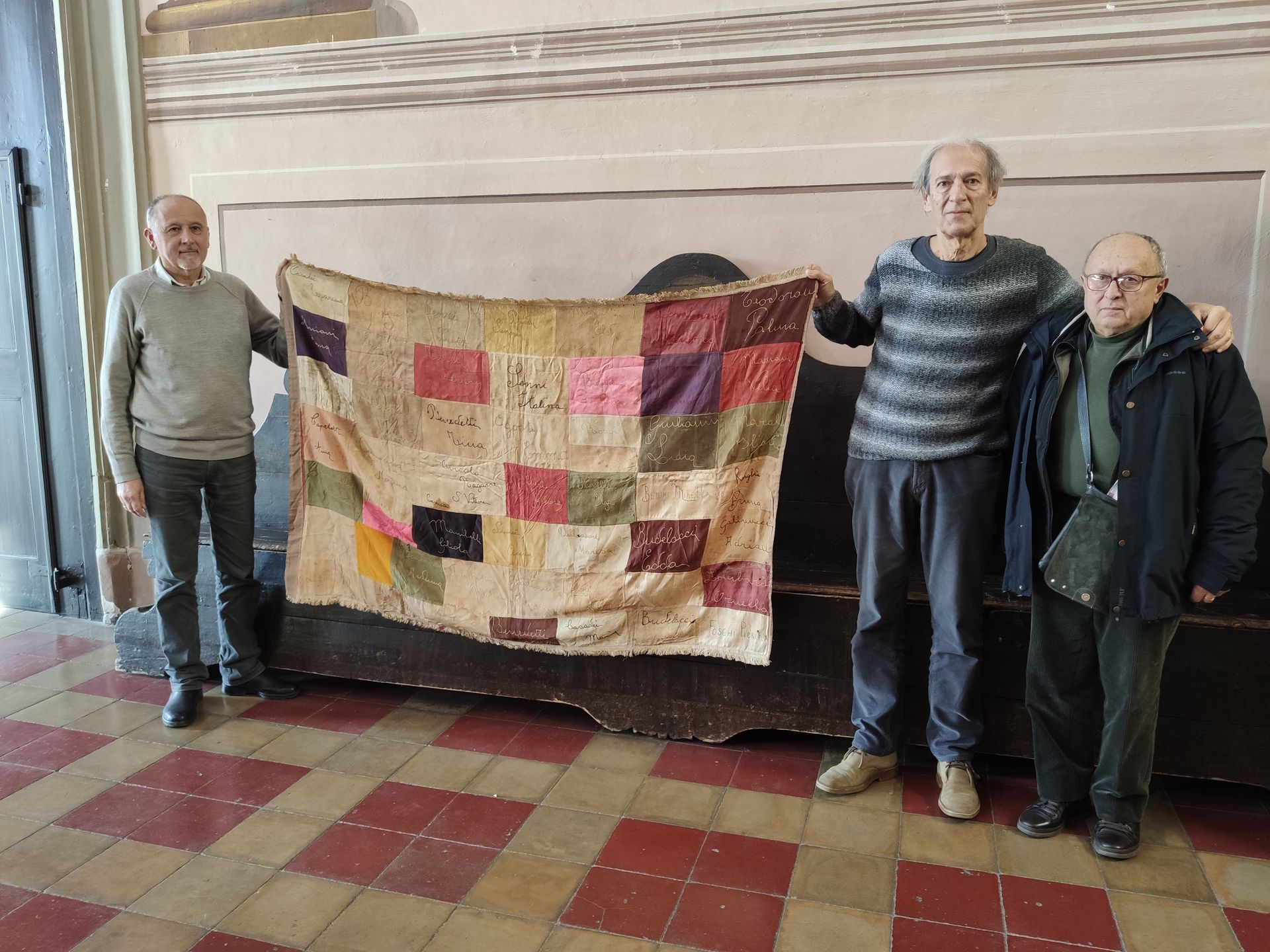 La bandiera è stata ritrovata, dopo una perigliosa ricerca degli ex militanti Pci, sotto un mucchio di tendaggi del vecchio circolo giardino di San Vittore, l’attuale Vidia club. Venne cucita nel ’51 da 49 donne, come segno di fratellanza tra le genti. Il suo nome originario, infatti, era “coperta dell’amicizia tra i popoli”.