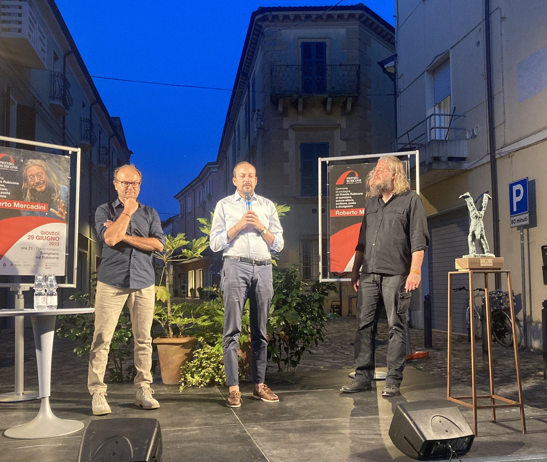 “Nel flusso dell’esistenza che si snoda come un fiume  a volte placida e a volte tumultuosa – si legge nelle motivazioni del premio – ci sono storie che si innalzano come ponti tra mondi differenti. Roberto Mercadini, dopo aver danzato per anni tra i numeri, ha abbracciato l’imprevedibile e infinito palcoscenico del mondo, dove con la magia dell’interpretazione è riuscito a toccare i sentimenti più profondi dell’anima. Le sue performance teatrali e letterarie rapiscono spettatori e lettori, conducendoli in un viaggio senza fine, dove ogni parola, ogni gesto delicato, ogni sorriso audace, fanno riflettere e immaginare. La sua bravura nel superare i confini, nell’affrontare le sfide e nel creare una nuova realtà attraverso la rappresentazione, ci ricorda come la vita stessa sia un’opera d’arte in continua evoluzione. Non importa quanto siamo lontani dalle nostre più autentiche aspirazioni, possiamo sempre trovare la forza per reinventarci e varcare il Rubicone”.