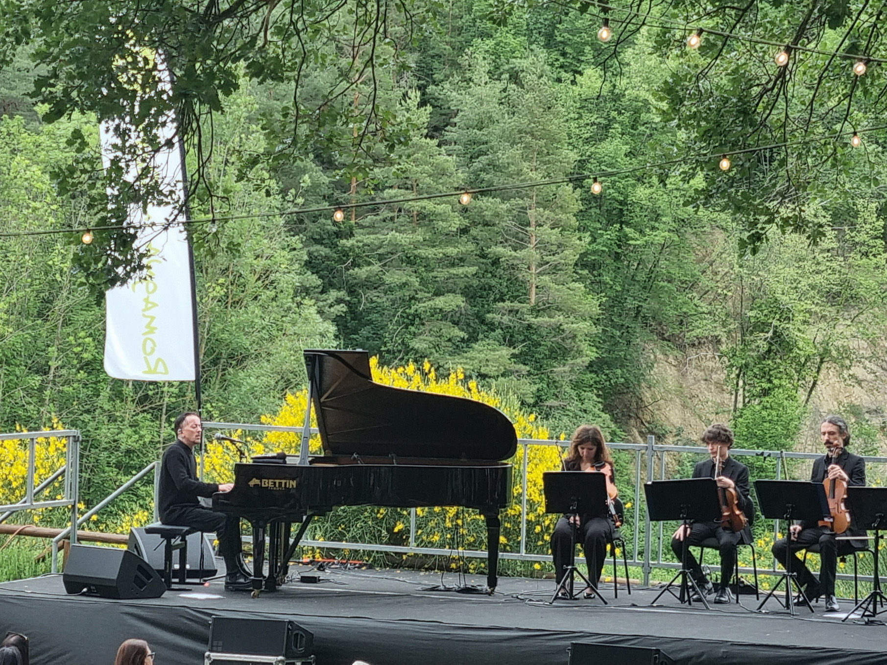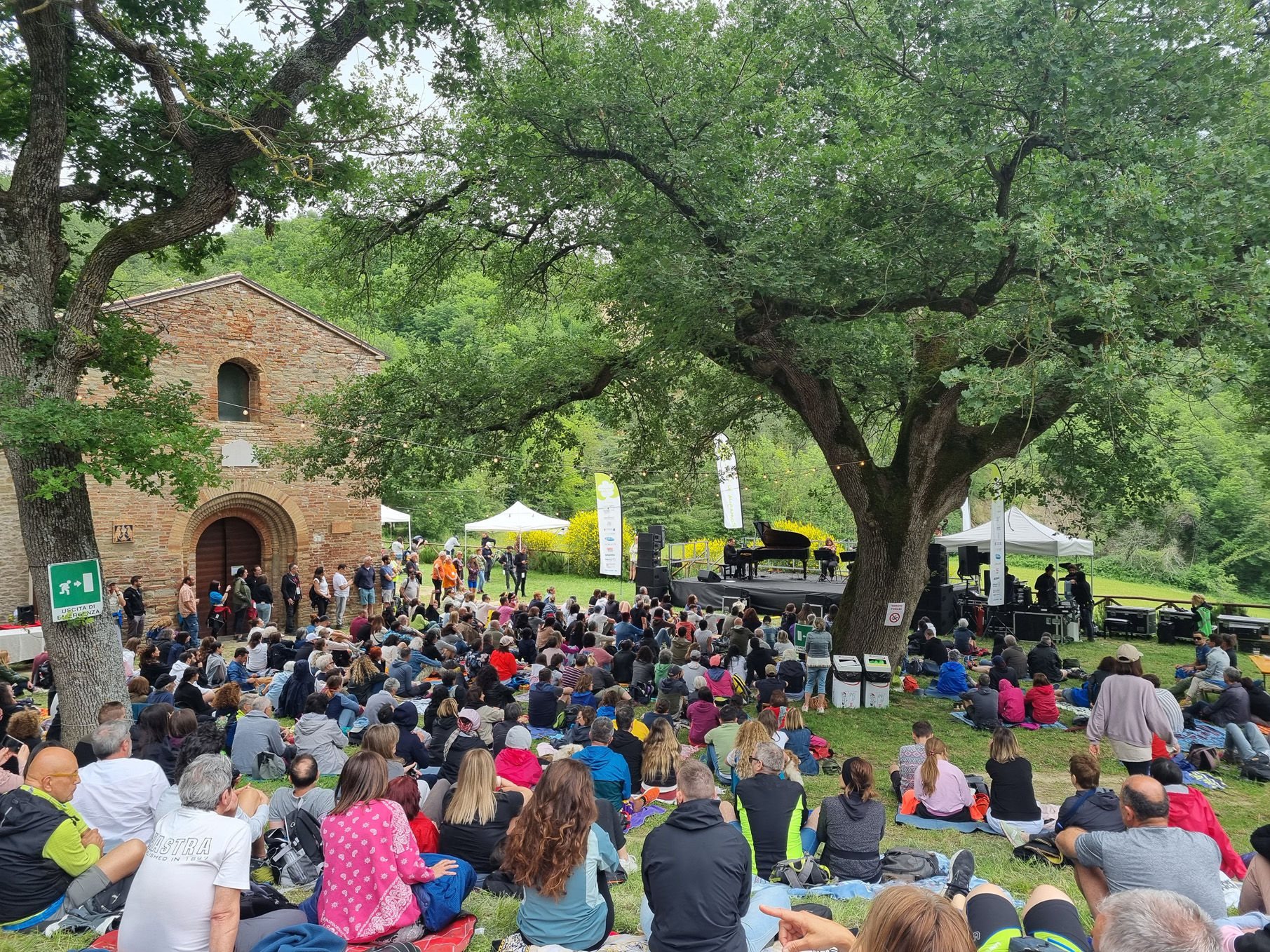 Note nella natura, bellezza nella bellezza. Domenica 2 giugno in 1.200 sono saliti (tutti a piedi) alla Badia di Montalto, quattro chilometri e 300 metri di dislivello sopra Sarsina, all’ultimo appuntamento della rassegna musicale “Romagna in fiore” promosso da Ravenna Festival nei territori colpiti dall’alluvione del maggio 2023.