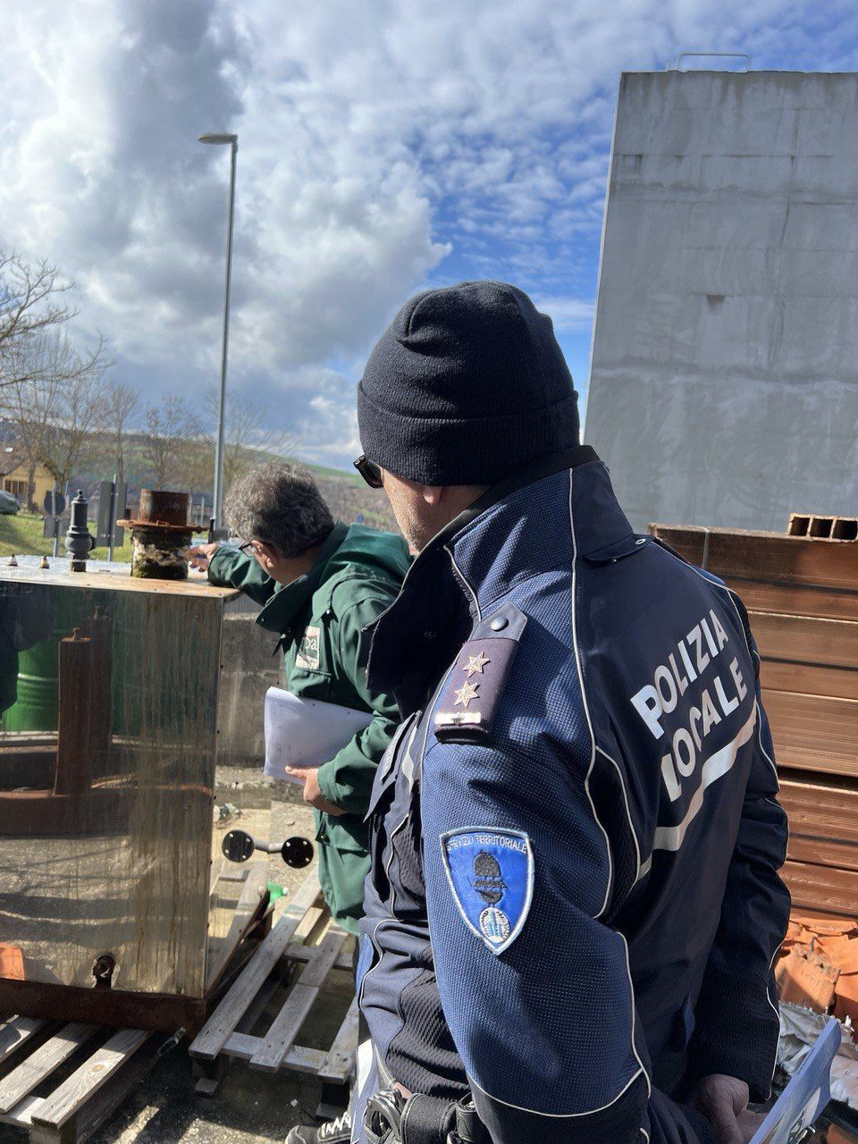 Parte di essi era anche stata accumulata su di una strada pubblica e pertanto la denuncia riguarda anche l’avvenuta invasione di immobile destinato ad uso pubblico.Gli accertamenti, compiuti con la collaborazione di Arpae, sono stati conclusi con l’emissione di un provvedimento di rimozione e remissione in pristino che il contravventore dovrà eseguire a sue spese entro 3 mesi.Nella foto gli agenti della Polizia locale sul postoResta aggiornato iscrivendoti al canale WhatsApp del Corriere Cesenate. Clicca su questo link