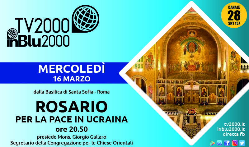 I media cattolici italiani invitano i fedeli, le famiglie e le comunità religiose a ritrovarsi, mercoledì 16 marzo alle 20,50, per recitare insieme il Rosario per la pace in Ucraina trasmesso su Tv2000 (canale 28 del digitale terrestre e 157 di Sky), InBlu2000, e su Facebook.