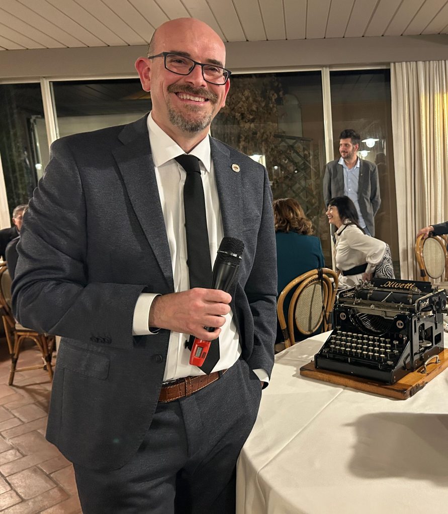 Riciputi è stato ospite del Rotary Valle del Rubicone ieri sera, giovedì 13 novembre, all’agriturismo Le macine di Montalbano, alla conviviale sul tema “Dalla macchina per scrivere a chat gpt, qualcosa è andato storto?”.