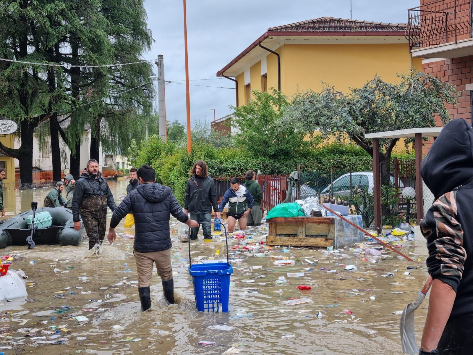 Al Ponte vecchio, inizio di via Roversano, mezzi anfibi all’opera. Ci sono anche dei bambini tra le persone recuperate con il gommone. C’è un grande lavoro di volontari e stanno arrivando altri mezzi di soccorso.
