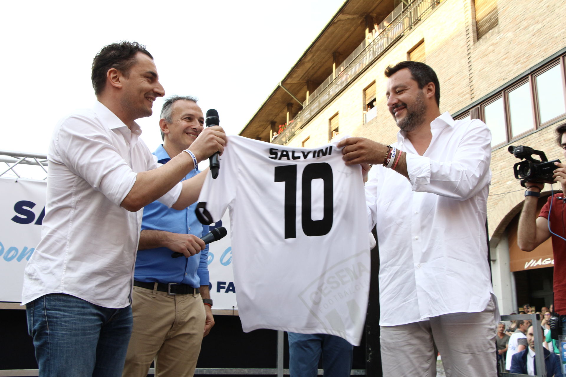 Prima di cedere la parola al ministro dell’Interno, Morrone gli ha fatto dono di una maglia bianconera con il numero 10 e il suo nome: “si tratta del regista, quello capace di far girare tutto. E finalmente Cesena può cambiare. L’aria, il vento del cambiamento è arrivato e soffia anche qui. Forza Cesena!”.