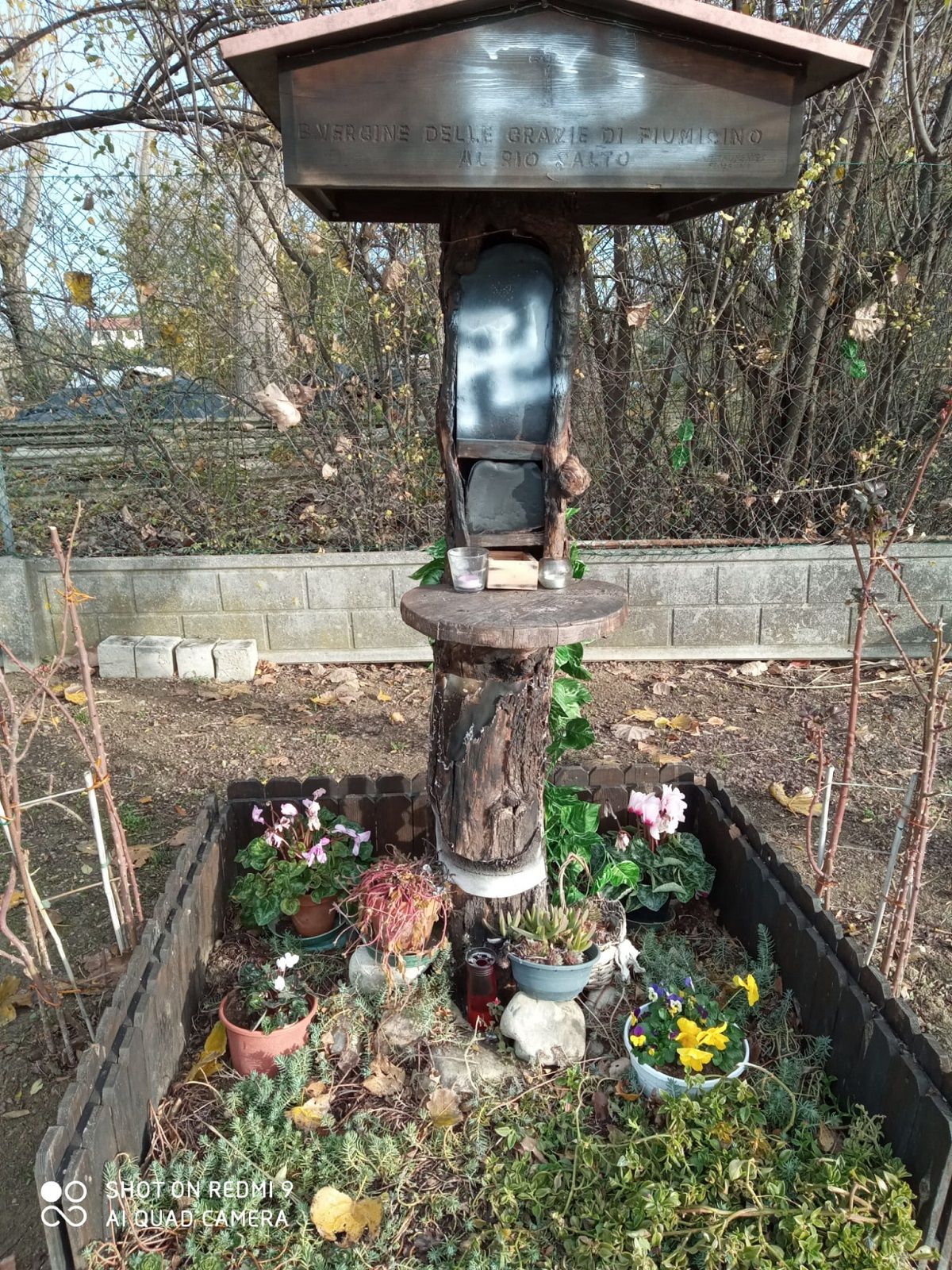 “Si tratta dell’ennesimo atto vandalico – dice Mauro Rossi, uno dei tre amici che hanno eretto la maestà – Questa volta la celletta è stata completamente bruciata. Non rimane più niente del tronco di susino che ospitava la Beata Vergine delle Grazie di Fiumicino e un sasso con dipinta una Madonnina con Gesù Bambino”.