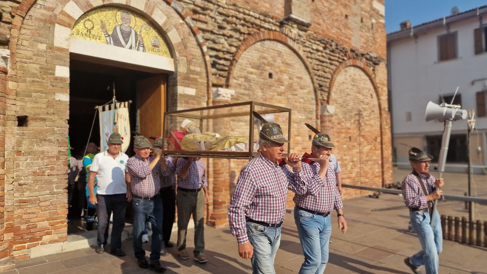 A presiedere la processione, nel tardo pomeriggio, è stato il vescovo Douglas Regattieri che, poco prima ha guidato anche la recita dei Vespri solenni nella concattedrale. I volontari alpini hanno portato la teca con il Santo lungo le vie del centro storico, dandosi il cambio con la Misericordia Valle del Savio. Accanto al gonfalone del Comune il sindaco Enrico Cangini con la Giunta e Mauro Fabbretti, presidente della Bcc di Sarsina.