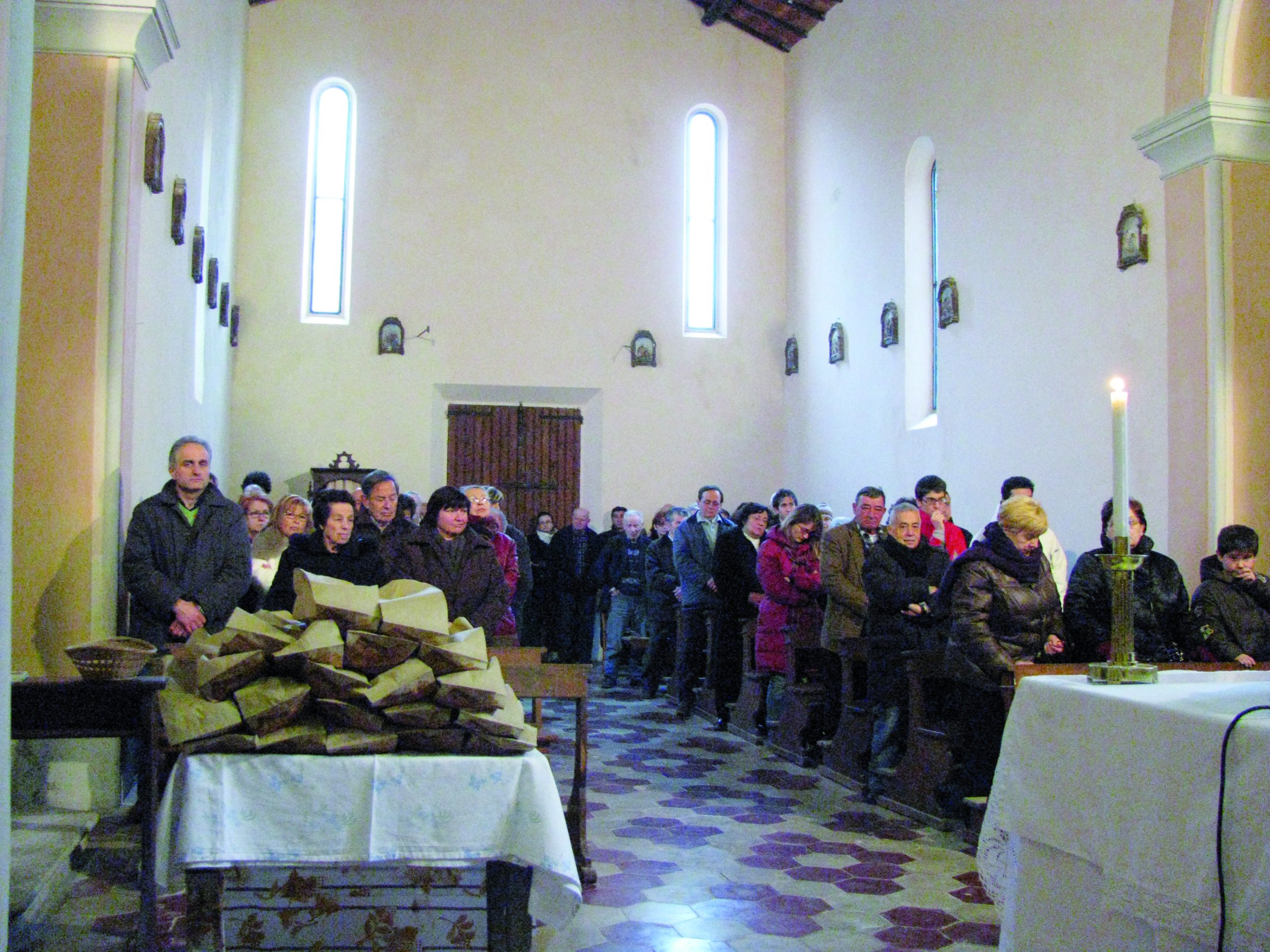 Nella foto (archivio Daniele Bosi) la celebrazione di Sant'Antonio nella chiesa di Tezzo (Sarsina) nel 2009