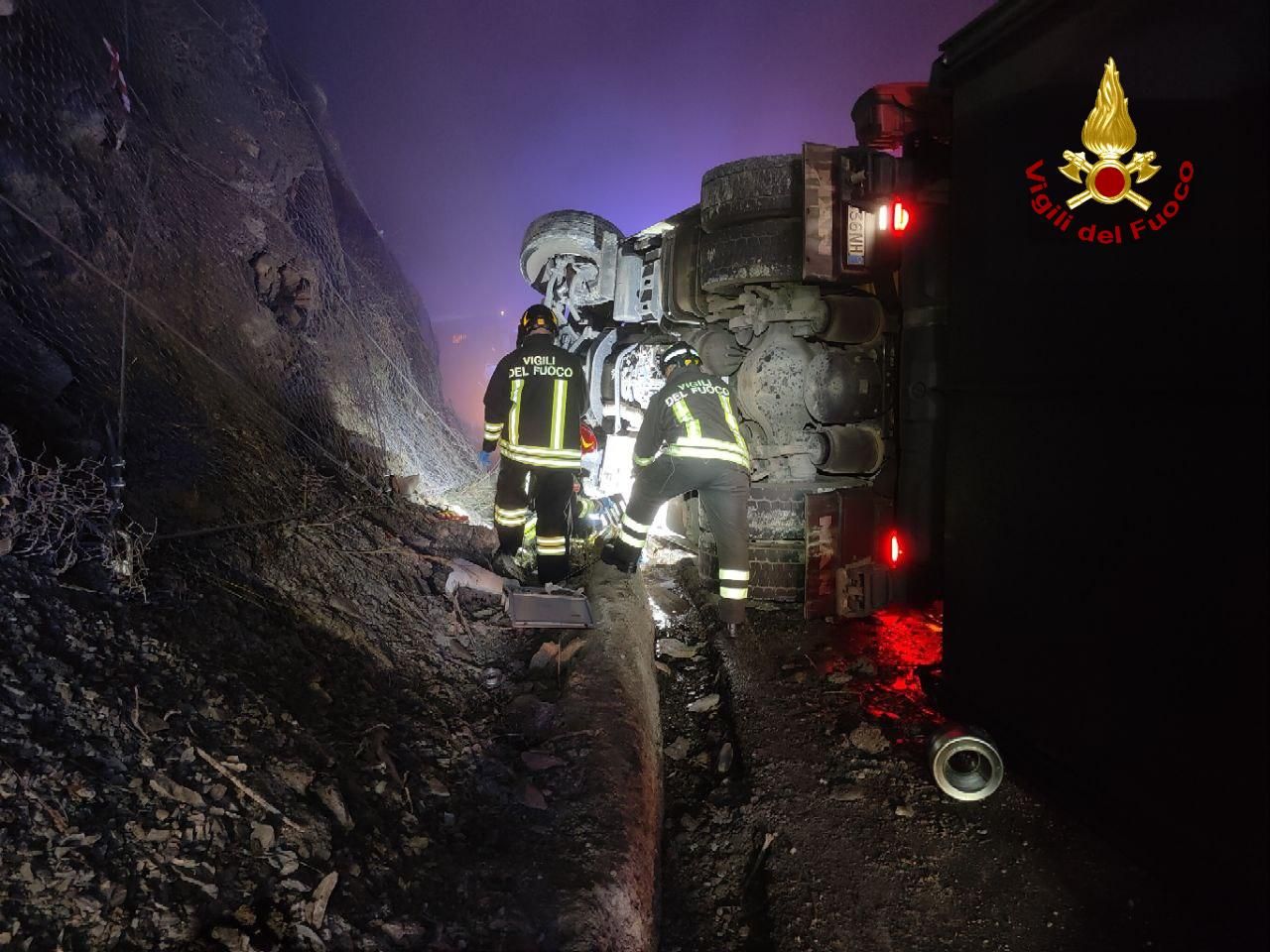 La squadra, giunta sul posto, ha messo in sicurezza un autocarro trasportante verdure, ribaltatosi su un fianco, che bloccava la strada in entrambi i sensi di marcia.