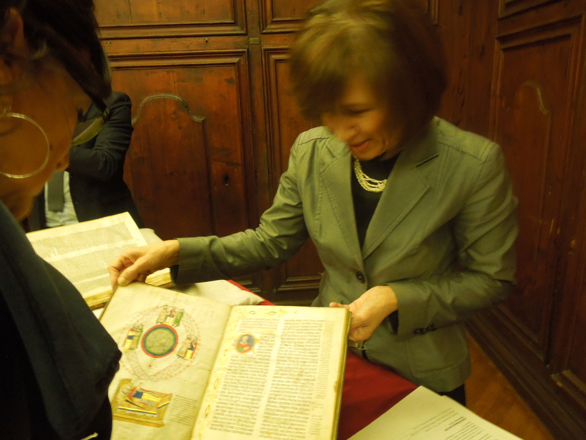Nella suggestiva sala all’interno della Malatestiana, su cuscini e tappeti rossi, erano in visione i sei codici interessati del restauro già dai prossimi giorni. Aperti e sfogliati con sapienza e cura da Paola Errani, responsabile della biblioteca antica e dei fondi storici della Biblioteca Malatestiana. Nonostante le condizioni favorevoli e la cura dedicata loro nel corso dei secoli, i codici malatestiani sono un tesoro fragile, che necessità di periodici interventi di restauro. “Almeno un centinaio quelli di cui avevamo ravvisato le necessità più urgenti dopo il controllo fatto nel 2010. Piccoli o più grandi, ad oggi sono 79 i codici che dovranno essere presto restaurati”. Negli ultimi quattro anni sono stati 53 i codici restaurati grazie all’intervento di cittadini e imprese cesenati che si sono fatti carico del recupero, attraverso la formula dell’Art Bonus.
