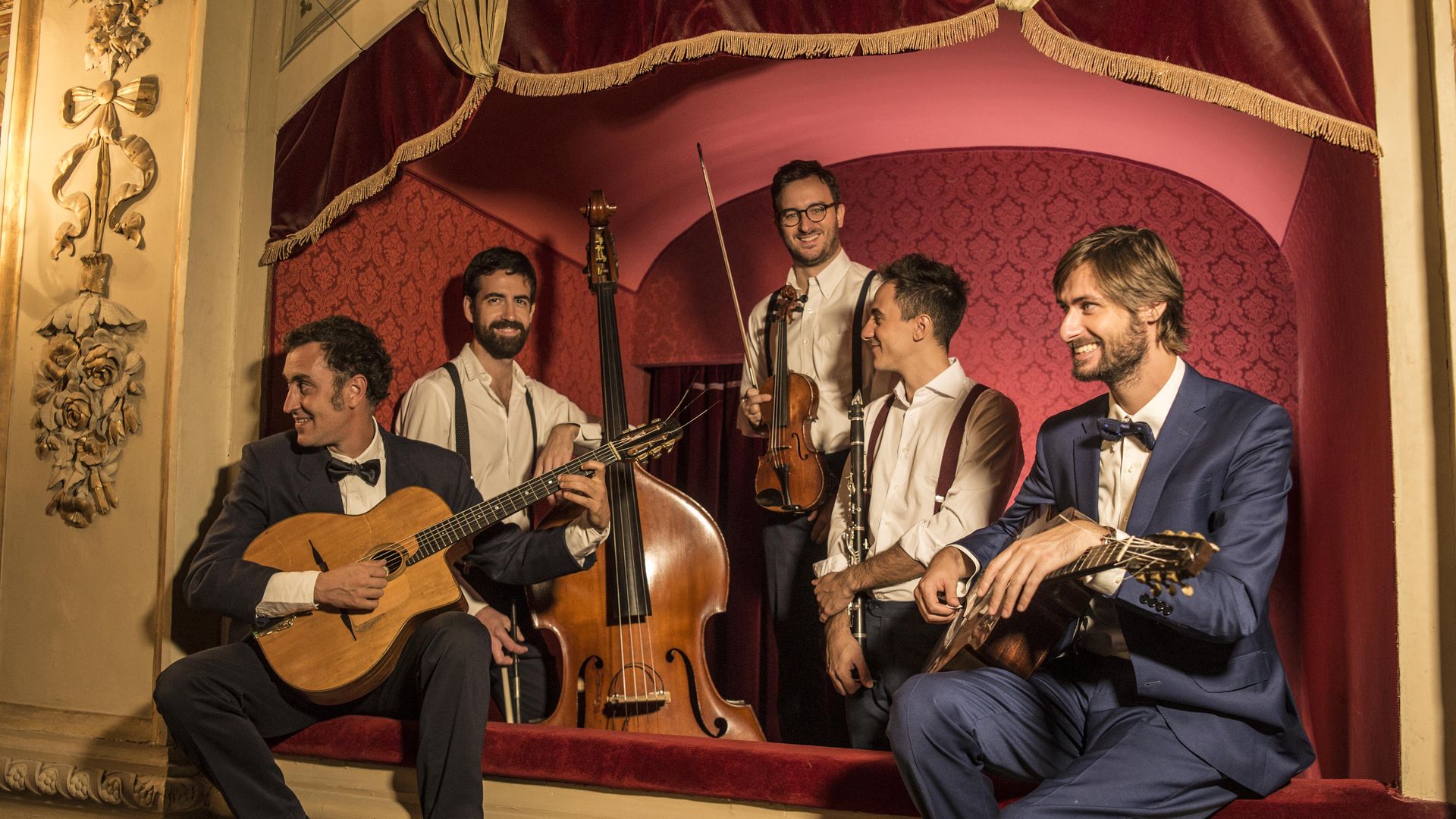Nel piccolo borghetto arroccato nel comune di Sogliano al Rubicone arrivano il ritmo e l’energia del quintetto milanese Four on six. Formati da Arturo Garra (clarinetto), Martino Pellegrini (violino), Tazio Forte (fisarmonica), Alessandro Centolanza (chitarra manouche) e Matteo Prina (contrabbasso), il quintetto propone un repertorio basato su composizioni originali e omaggi alla musica italiana attraverso ispirazioni che vanno dallo swing tradizionale al nu jazz. Un’identità e un sound riconoscibile del gruppo, il cui obiettivo principale è di condividere la musica non solo sul palco ma soprattutto con il pubblico.