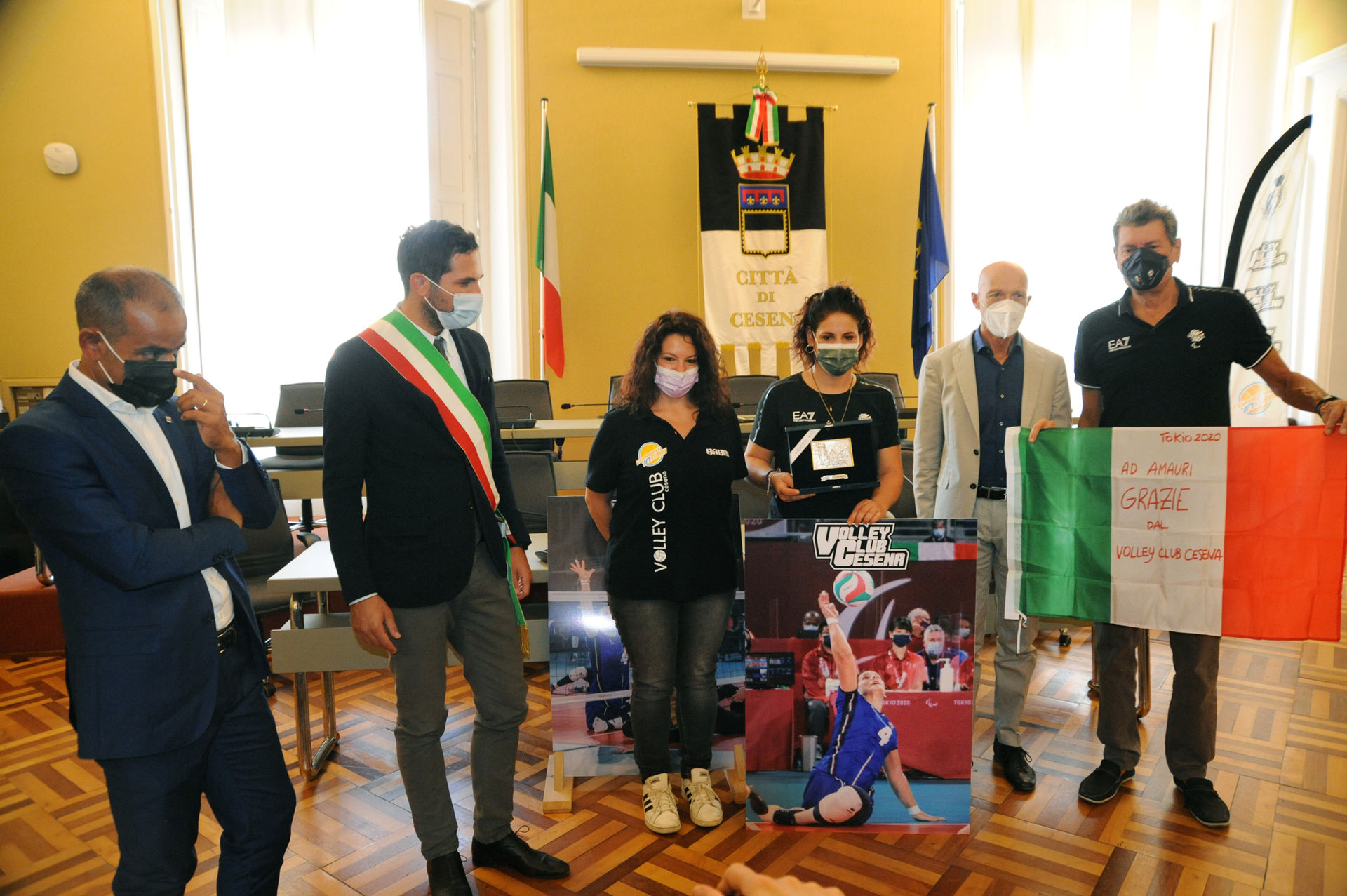 È stata la prima atleta cesenate ad aver partecipato a una Paralimpiade. Lei è Roberta Pedrelli, ha 42 anni ed è di Calisese di Cesena (a lato la sua intervista pubblicata sul Corriere Cesenate il 25 agosto scorso). Le Paralimpiadi sono quelle che si sono conclude poche settimane fa a Tokio. E questa mattina il sindaco Enzo Lattuca e il vicesindaco Christian Castorri le hanno reso onore nella sala del Consiglio comunale, dove è stata ricevuta insieme alle compagne del Sitting Volley del Volley Club Cesena, squadra di appartenenza.