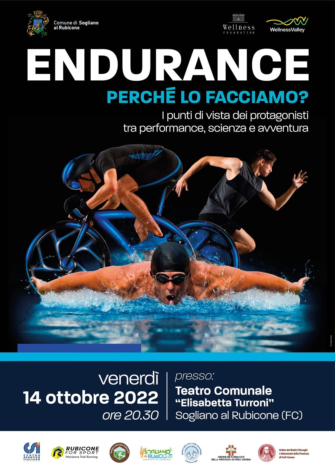 “Endurance: perché lo facciamo?” è patrocinato, dal Comune di Sogliano al Rubicone, dall’Ordine dei Medici e dall’Ordine dei Farmacisti della Provincia di Forlì e Cesena, dalla Wellness Foundation Research e dal Centro sportivo italiano, Csi.