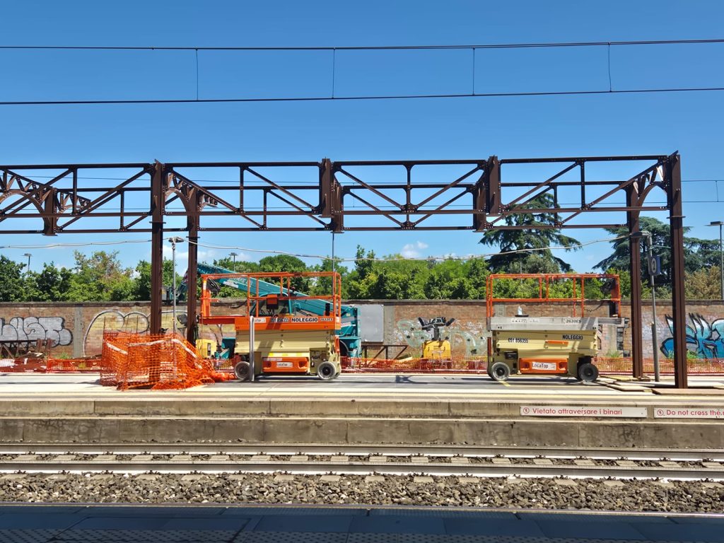 Nel marciapiede a servizio del secondo e terzo binario della stazione di Cesena è in corso, dopo mesi di attesa, il montaggio della nuova pensilina.