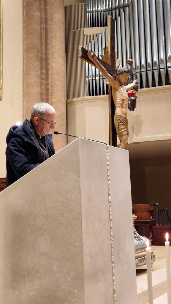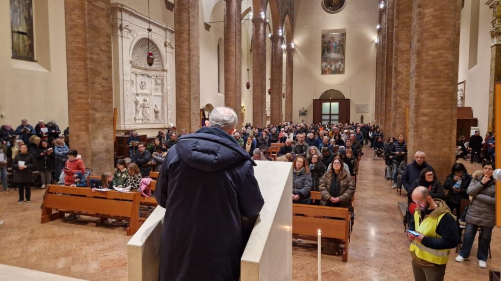 Le meditazioni, rivolte in gran parte sai grandi temi dell’attualità, dalle guerre alle ingiustizie, dalle disuguaglianze ai soprusi, con il cuore sempre aperto alla speranza che non muore mai, sono state proposte dal vescovo di Cesena-Sarsina, l’arcivescovo Antonio Giuseppe Caiazzo. Il libretto, i canti e tutta l’organizzazione sono stati curati dal movimento di Comunione e liberazione. Con il vescovo hanno preso parte alla Via Crucis anche il vicario generale e parroco di San Domenico, monsignor Pier Giulio Diaco, e don Tonino Domeniconi, canonico della Cattedrale.