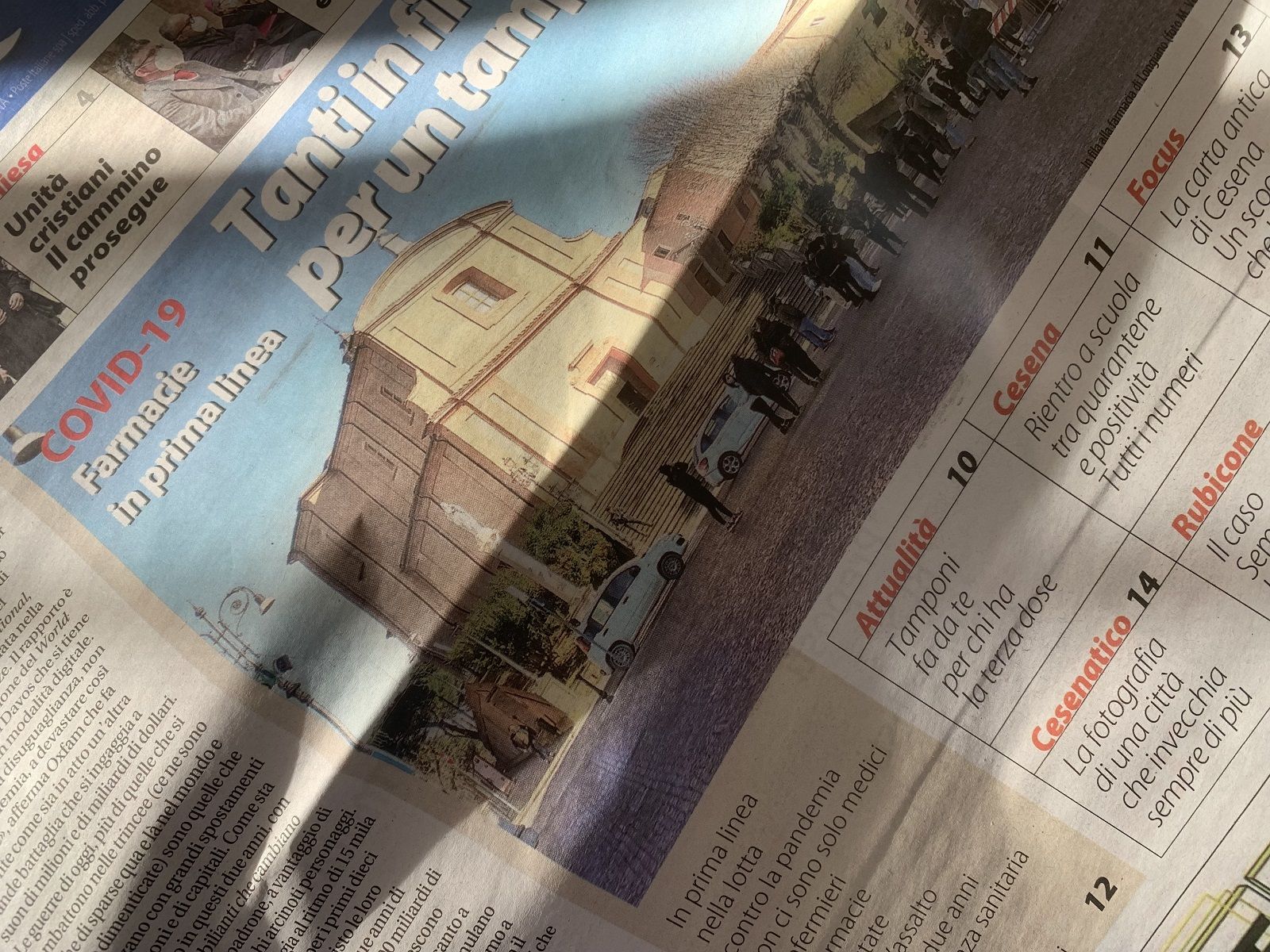Tanti in fila per un tampone, il titolo di apertura della nostra edizione cartacea