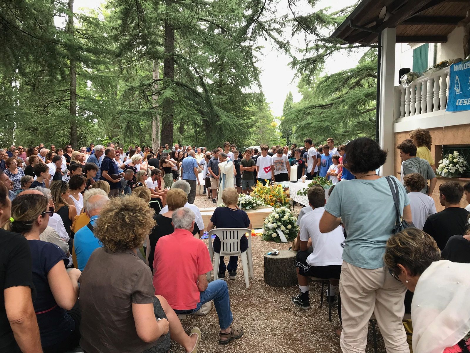 Nel parco di Villa Dionora, sulle colline di Carpineta, oggi pomeriggio sono salite a centinaia giovanissimi, insegnanti e amici della famiglia Suzzi per dare l’ultimo saluto al 14enne Sebastiano Suzzi deceduto il primo agosto scorso in un incidente in moto avvenuto lungo la via Cervese, all’interno dell’abitato di Sant’Egidio.