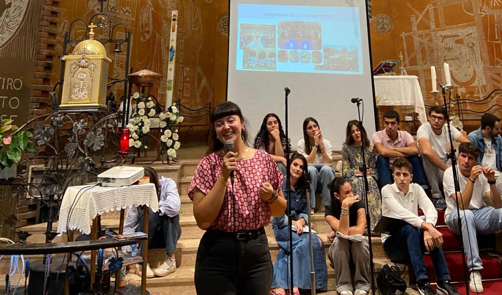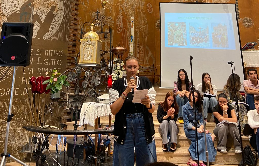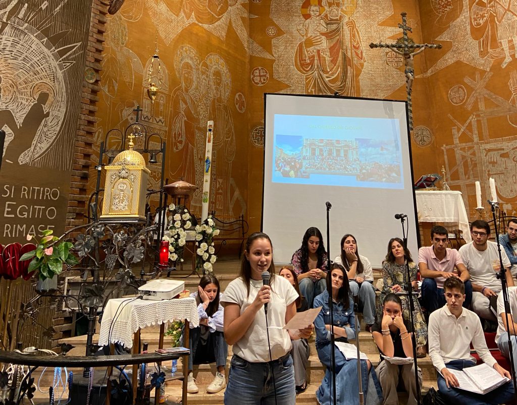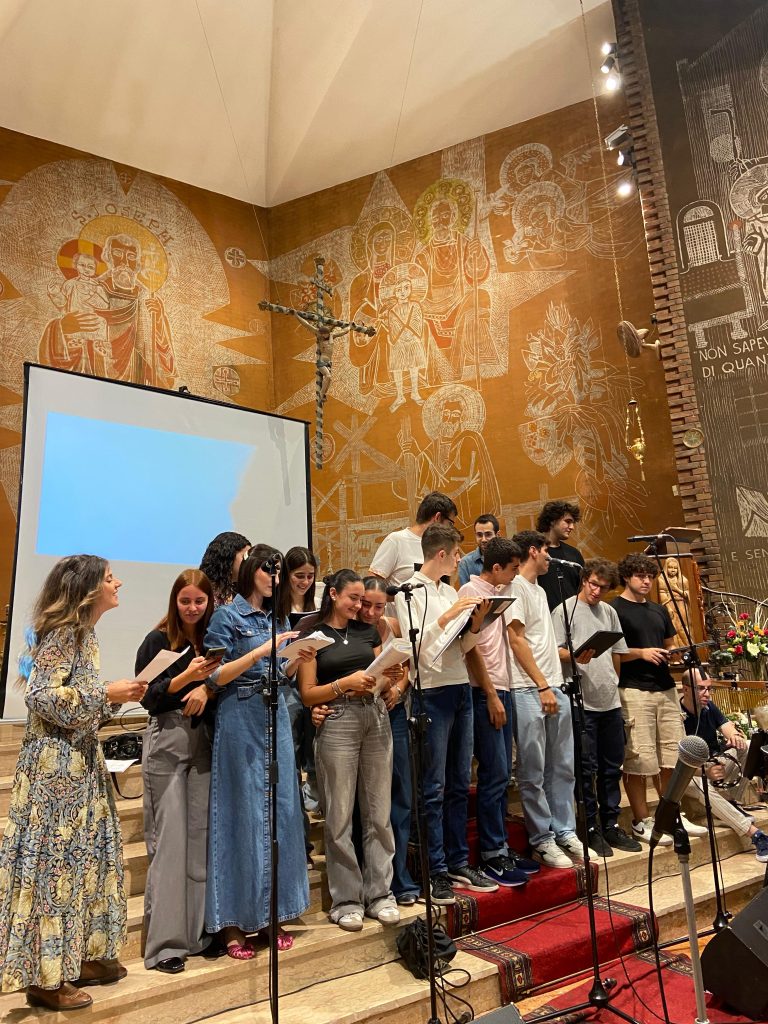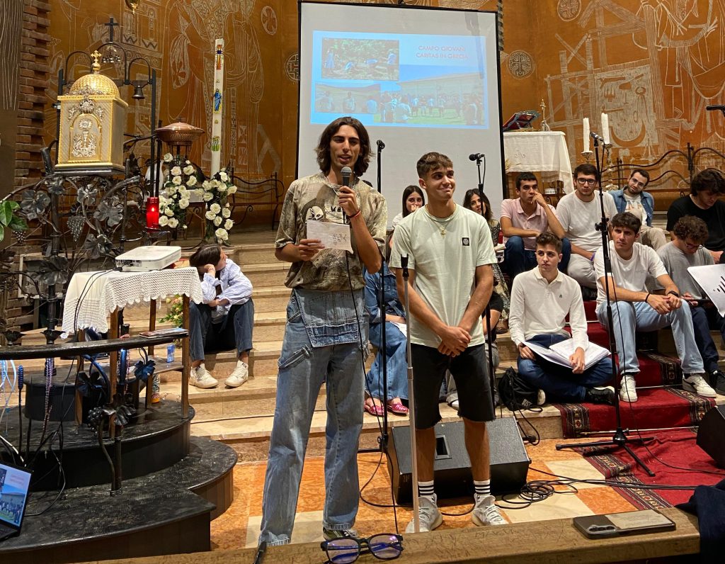 Sono seguite le testimonianze di Francesco Poletti anche lui di ritorno dal Giubileo dei giovani. Maria Teresa ha parlato del suo servizio educativo al centro estivo. Una testimonianza ha riportato l’esperienza del campo giovani Caritas, in Grecia.