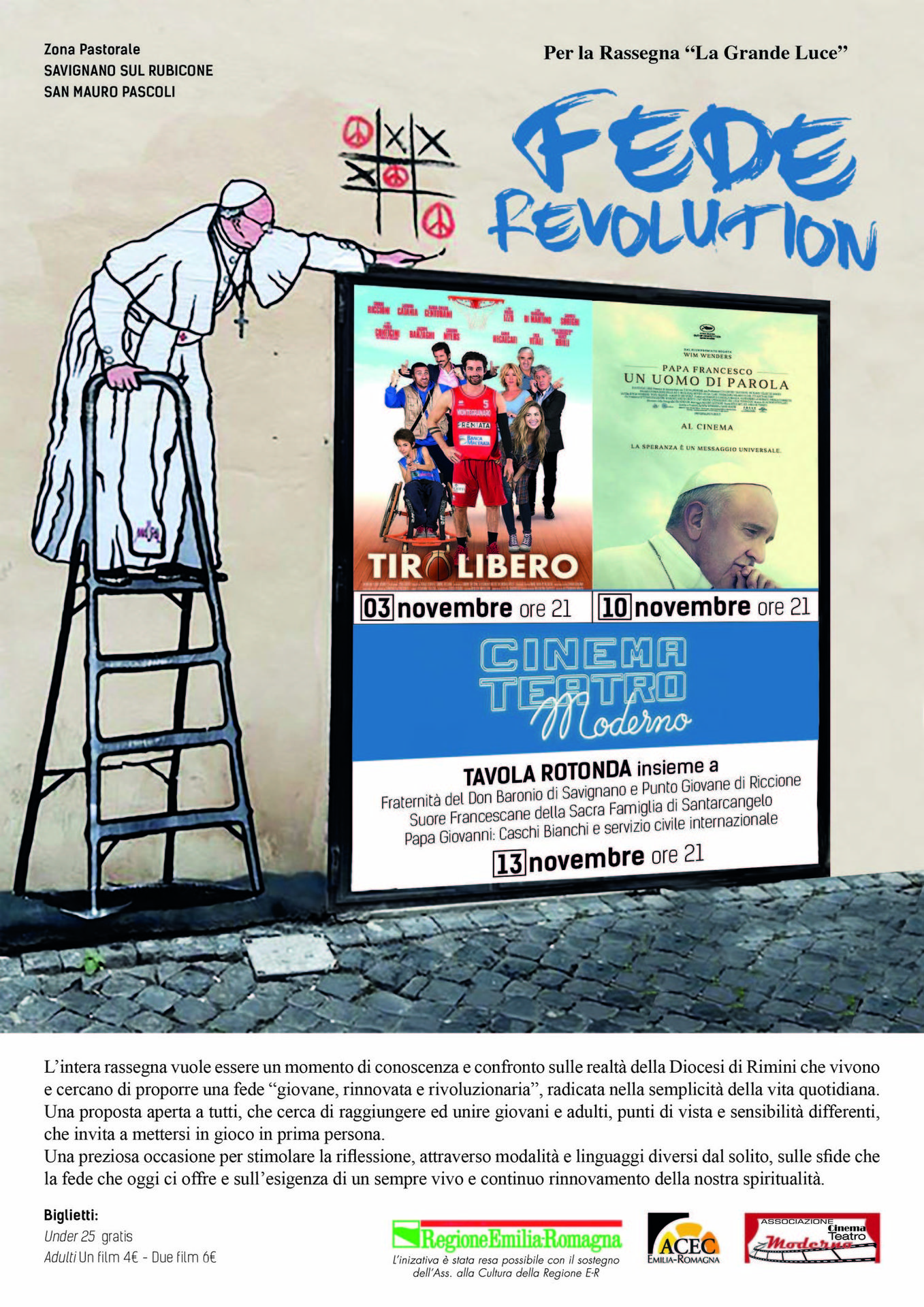 Tema centrale della rassegna sarà la rivoluzione della fede-“Fede Revolution”- e sarà caratterizzata dalla visione di film incentrati sul vivere la fede oggi, in modo nuovo, attivo e rivoluzionario.