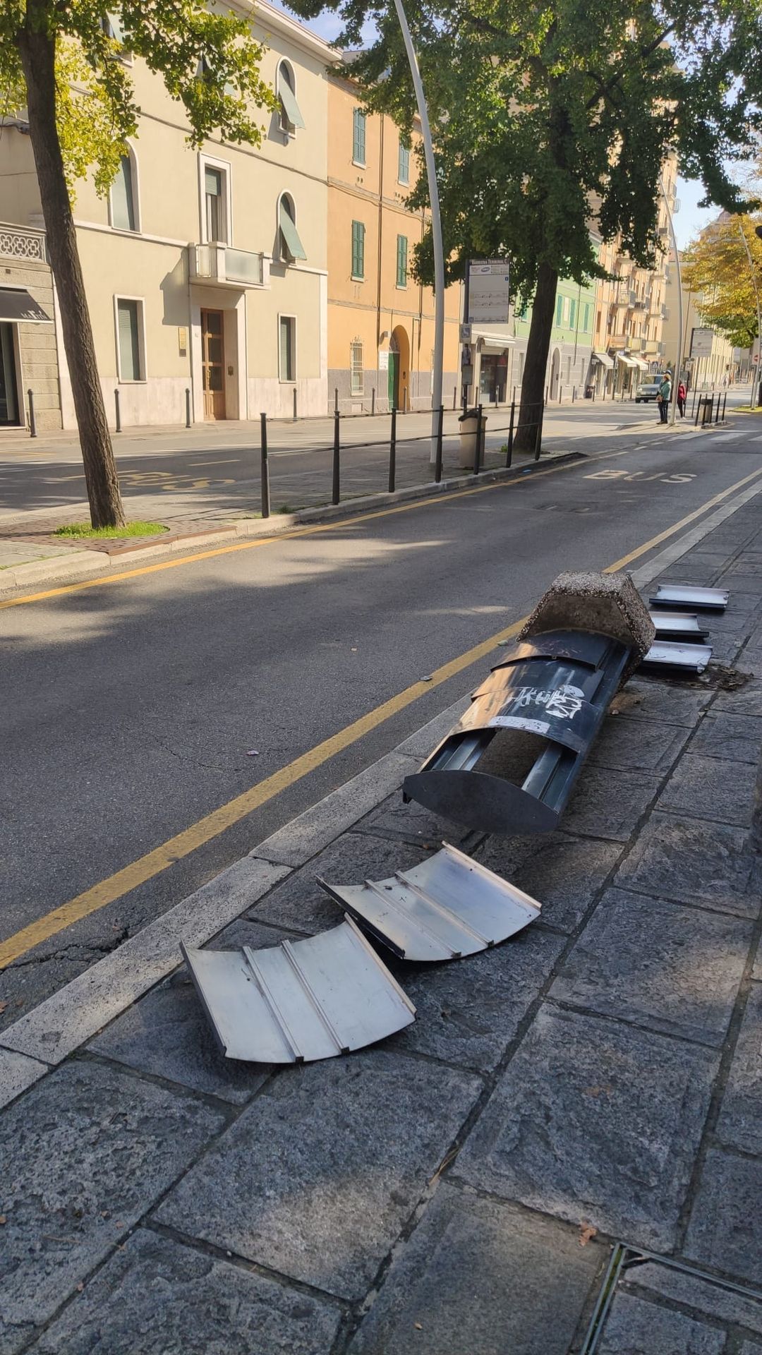 Sono ancora così da lunedì mattina scorso i totem Start Romagna, divelti e abbattuti al terminal Barriera.