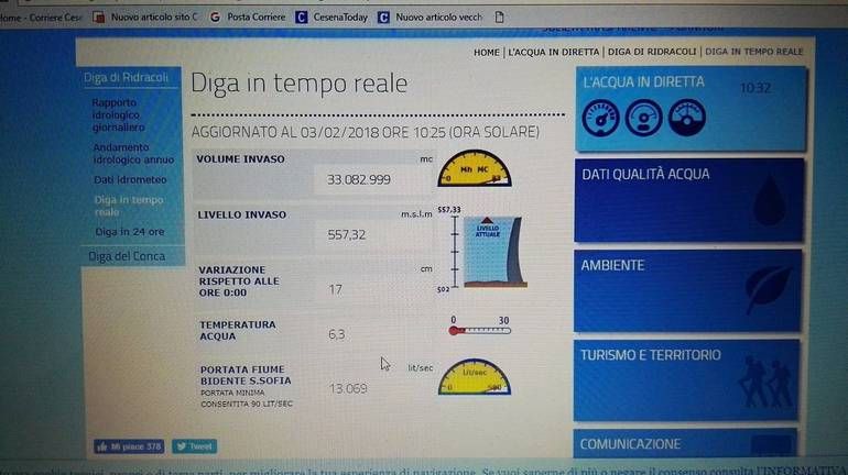 Dopo tanti mesi all’asciutto, le nevicate e le piogge delle ultime settimane hanno colmato l’invaso, fino ai dati di pochi minuti fa che vedono arrivare l’acqua fino alla tracimazione. L’apporto è ben superiore al deflusso. Una buona notizia per tutto il territorio romagnolo.