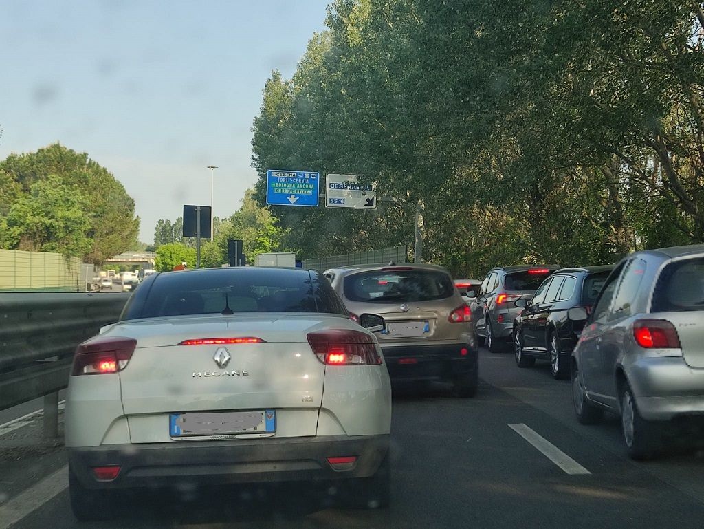 Lunghe code  e traffico fermo sulla secante per la temporanea chiusura della carreggiata in direzione con l’innesto della SS3bis, al km 27,000, a Cesena, a causa di un mezzo pesante che ha disperso il carico sul tracciato. Le deviazioni vengono segnalate in loco.