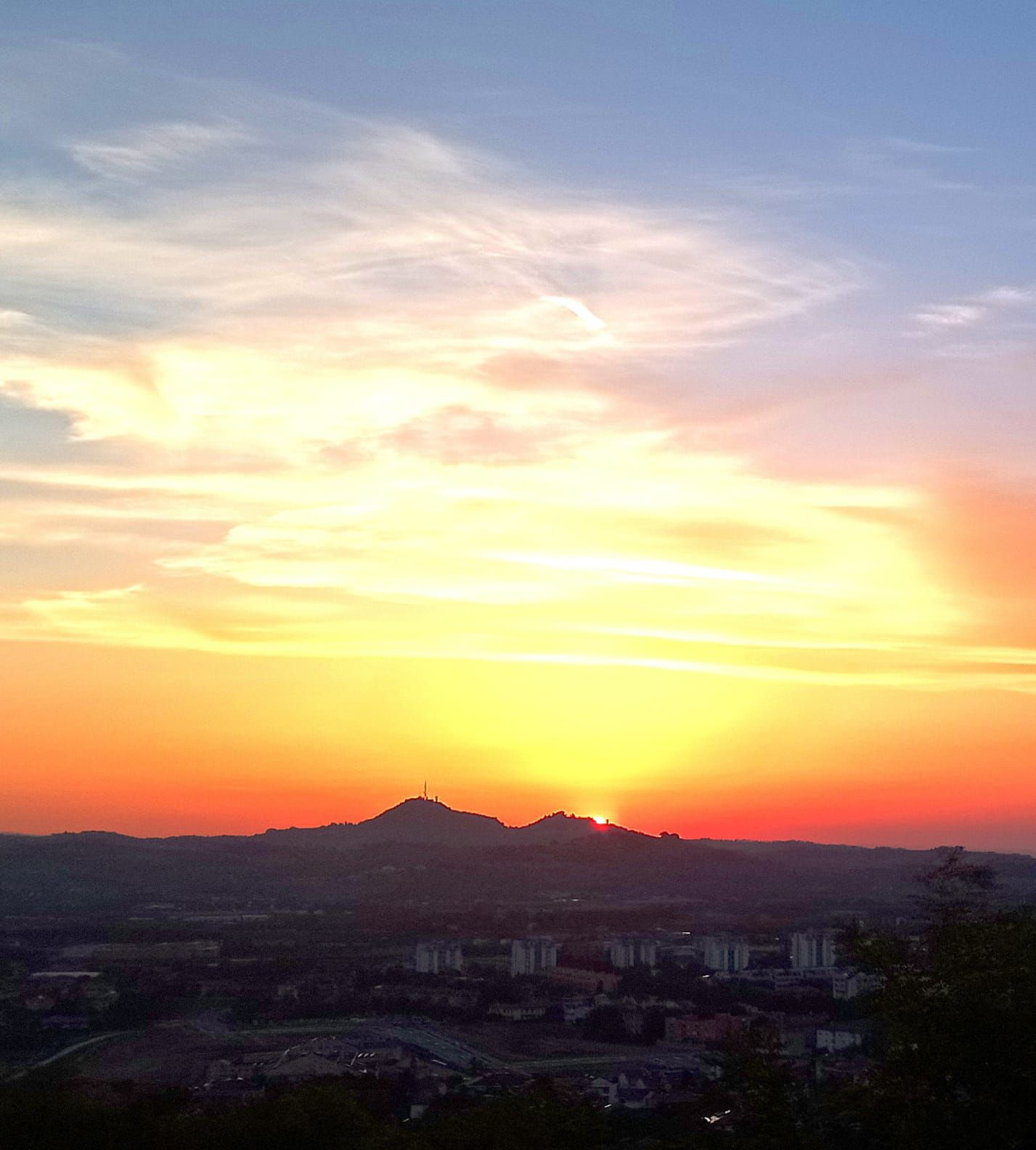 Natura spettacolo con lo skyline di Cesena avvolto da colori caldi negli scatti dal colle Garampo.